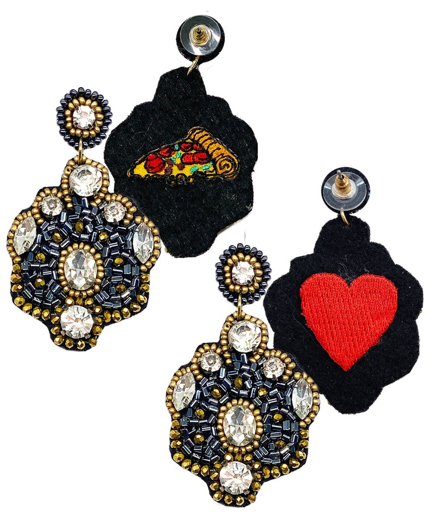 Playful and Unique Touch: The "Pizza Love" patch adds a fun, unexpected twist to these glamorous earrings, making them perfect for those who love to mix fun with fashion.
