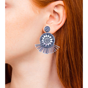 Create sparks with our dazzling Silver Firework Earrings. These lightweight and hypoallergenic earrings feature delicate silver beading, sparkly crystals, and a silver fringe, perfect for an elegant evening or special occasion.