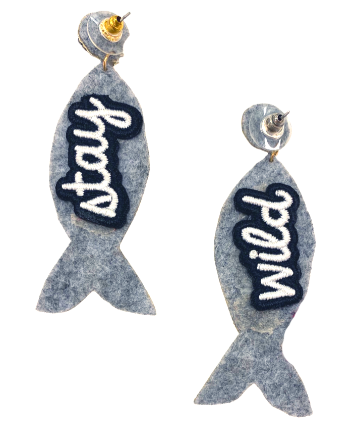 Look on the bright side with these sparkling Silver Linings Earrings, featuring dazzling silver sequins in a fun fish design! Perfect for adding a touch of glitz and glam to any outfit, these playful earrings are sure to bring you good luck. With "Stay Wild" and "Wild" patches, they make a bold statement wherever you go.
