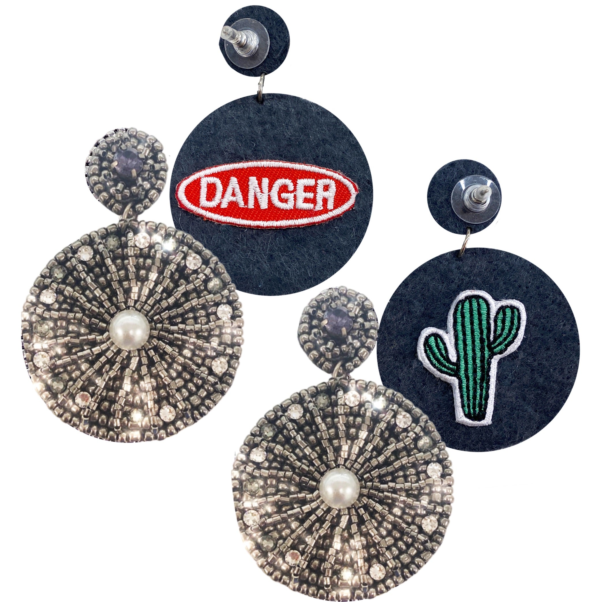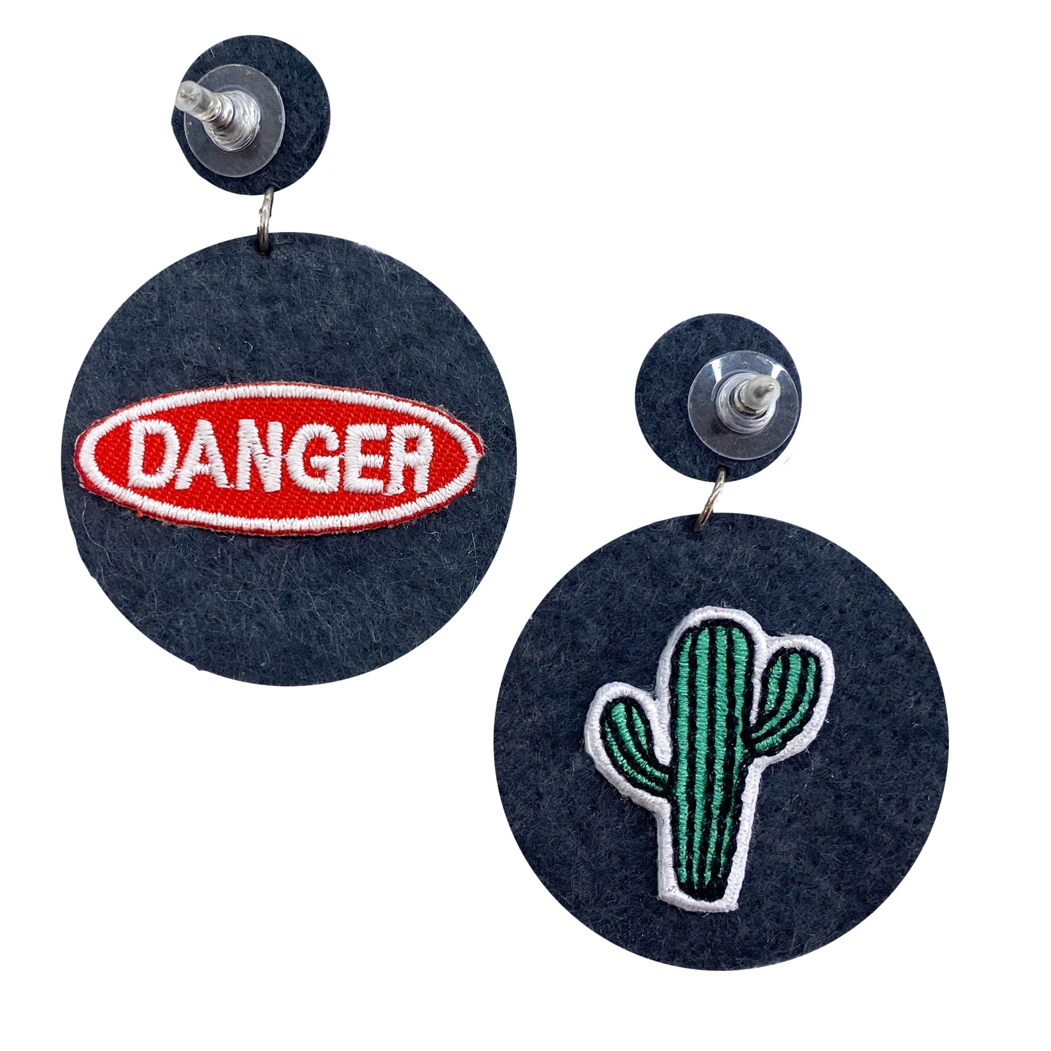 🌵 Playful Patch Details: Featuring "Danger" and cactus patches, these earrings bring a unique and fun element to your accessory collection.