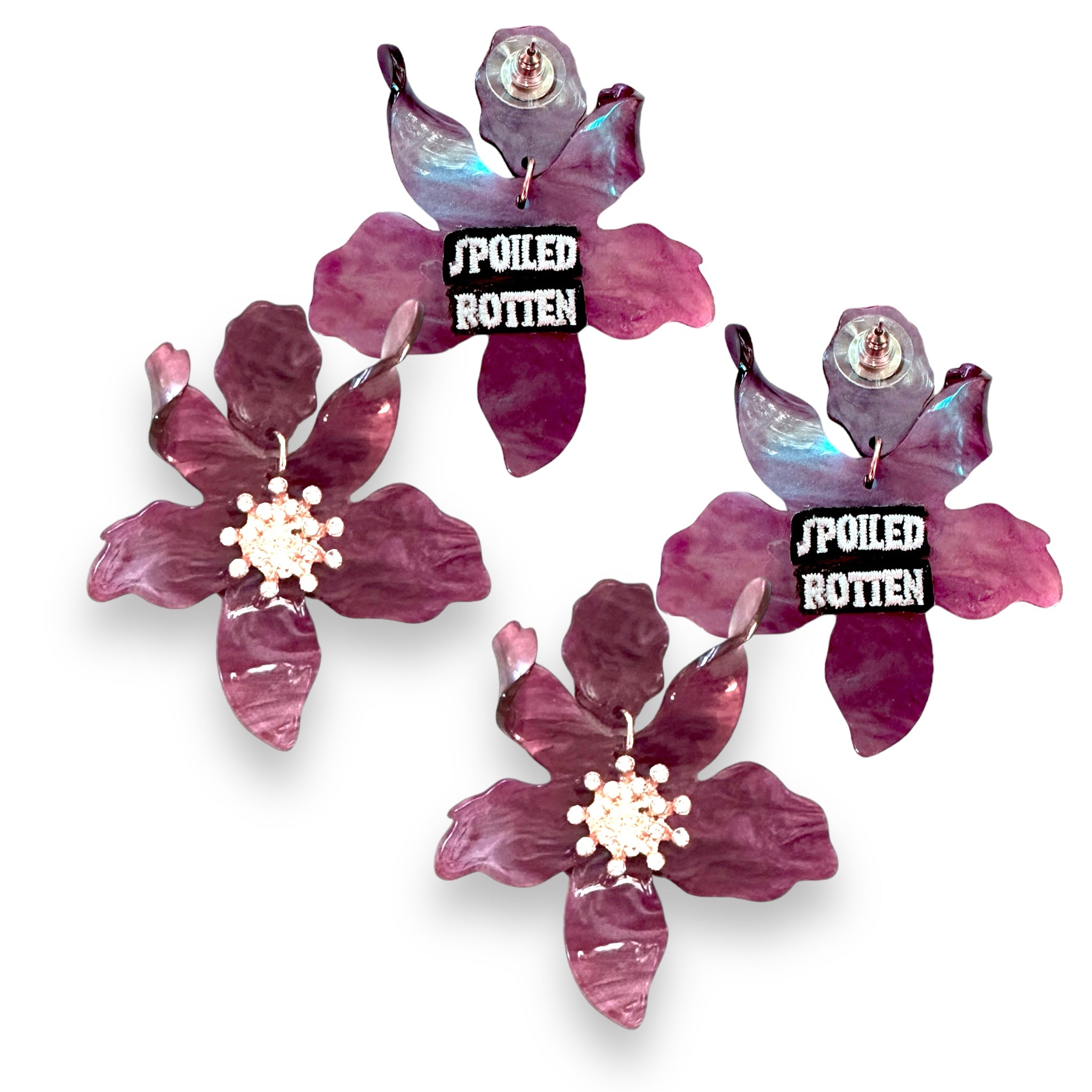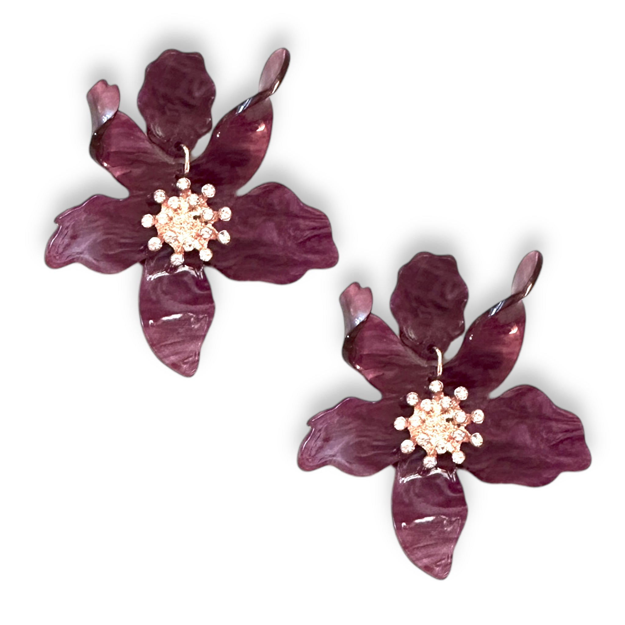 Statement-Making Blooms: These earrings feature eye-catching purple flowers, designed to make a bold and fashionable statement wherever you go. Their vibrant hues and intricate petals draw attention, adding a touch of femininity and flair to your outfit.