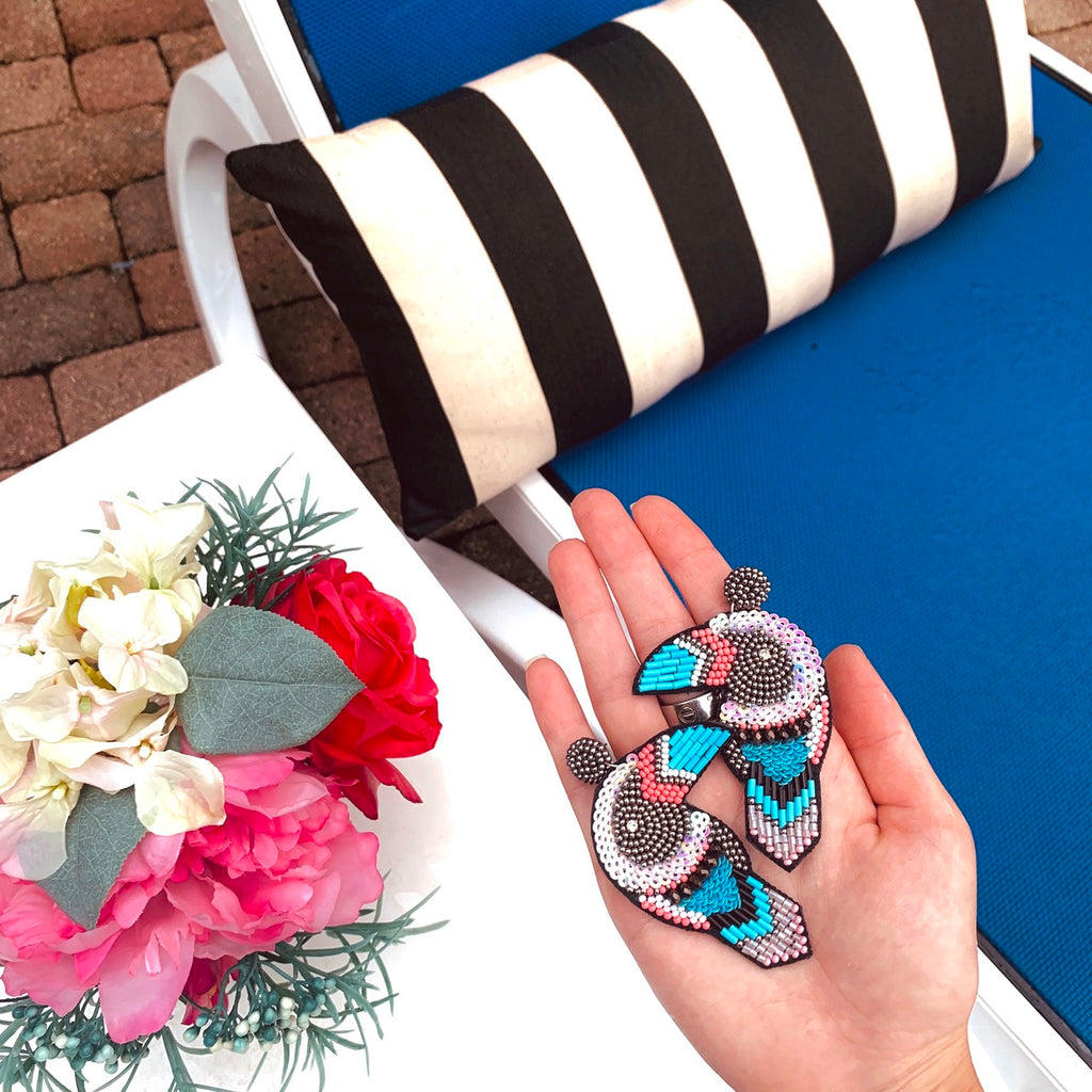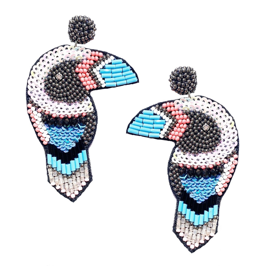 Beaded Toucan Statement Earrings 🦜: Embroidered and beaded toucan birds in bold colors bring the wow to your wild side.