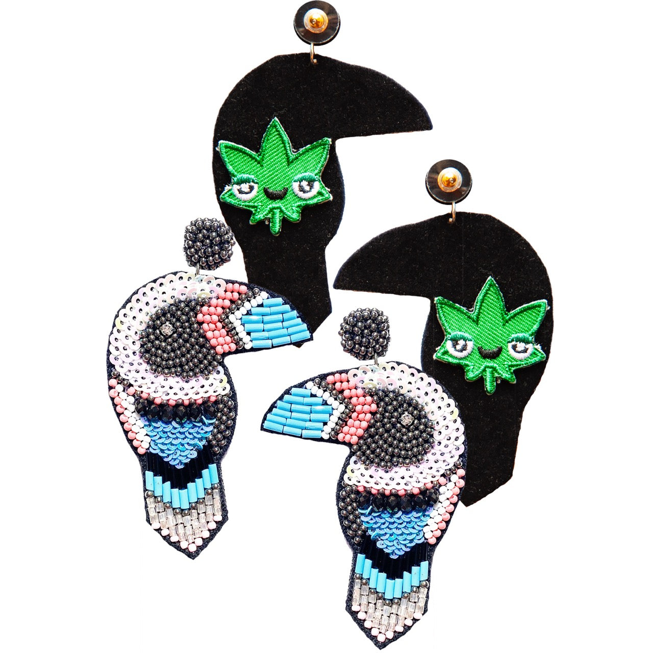 Feeling bird-brained in the best way possible. The Yes "Tu Can!" Earrings bring bold jungle energy with colorful toucans, beading, embroidery, and a very motivational pun. Earrings that say “I believe in you,” but louder.