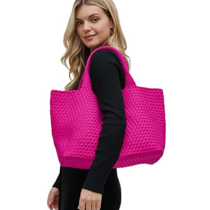 Distinctive and Stylish: The basketweave pattern adds a unique touch to this tote, setting it apart as a stylish accessory for any occasion.