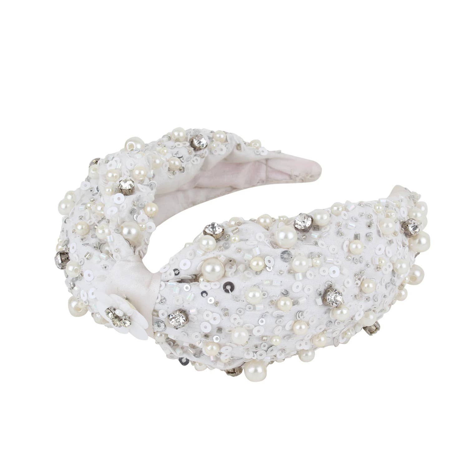 This stunning white beaded headband features intricate pearl and rhinestone embellishments, making it a perfect accessory for weddings, parties, or any stylish occasion. Elevate your look with this luxurious hair accessory that adds a touch of elegance and sophistication.