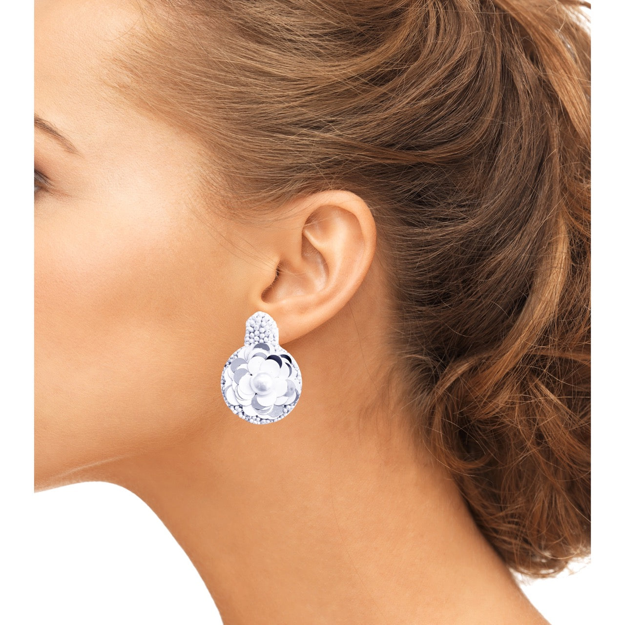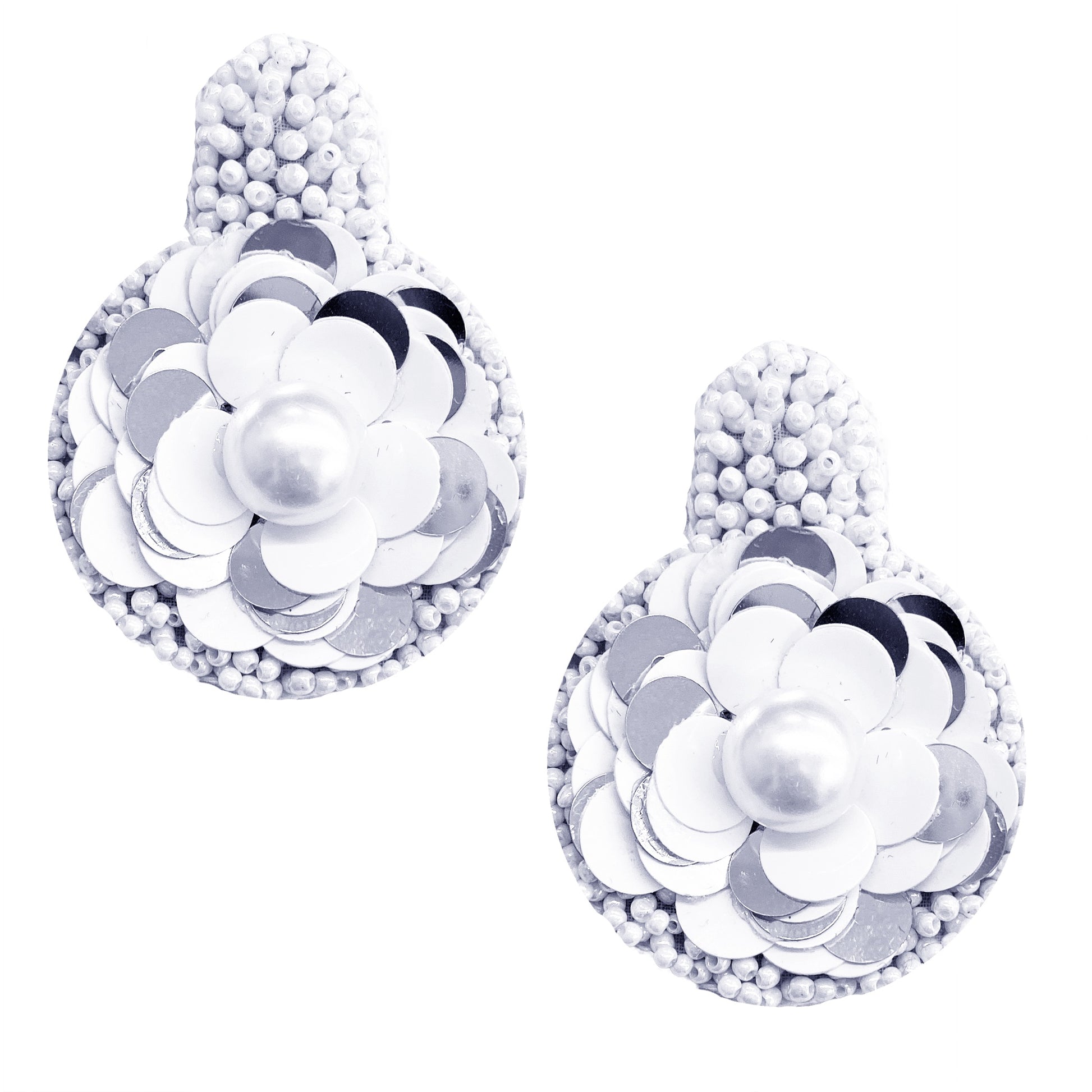 Look blooming in all seasons with our pearl blossom flower earrings. They make the perfect choice for a soft, feminine look. We handcrafted this pair with light discs around a cluster of beading in the middle, attached to a beaded closure. Pair with your favorite outfit to complete this look!