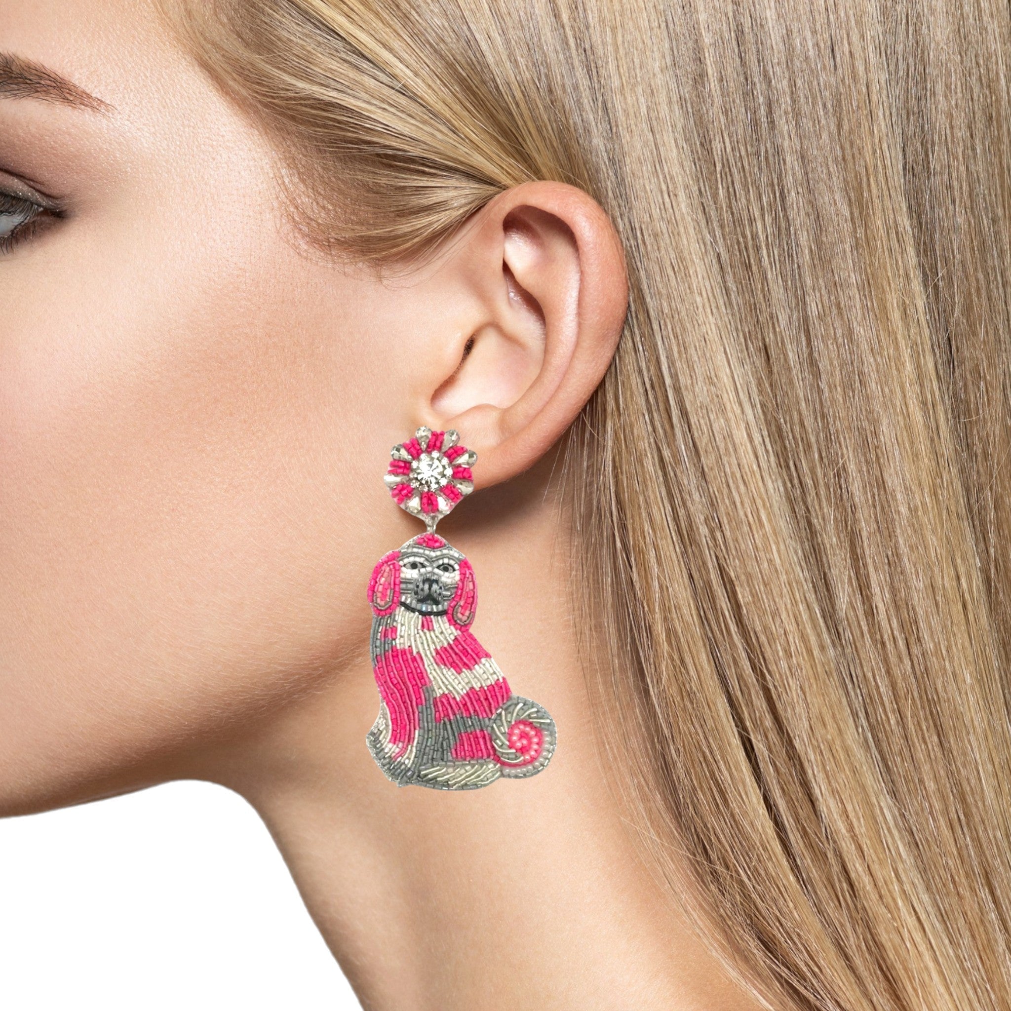 Elevate your casual chic style by pairing these dog earrings with a simple white tee and denim jeans. For a more sophisticated touch, complement them with a classic black dress and heels. These earrings are versatile enough to transition effortlessly from day to night, making them a must-have accessory in any jewelry collection.