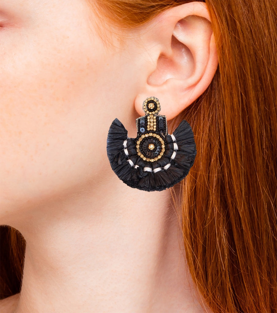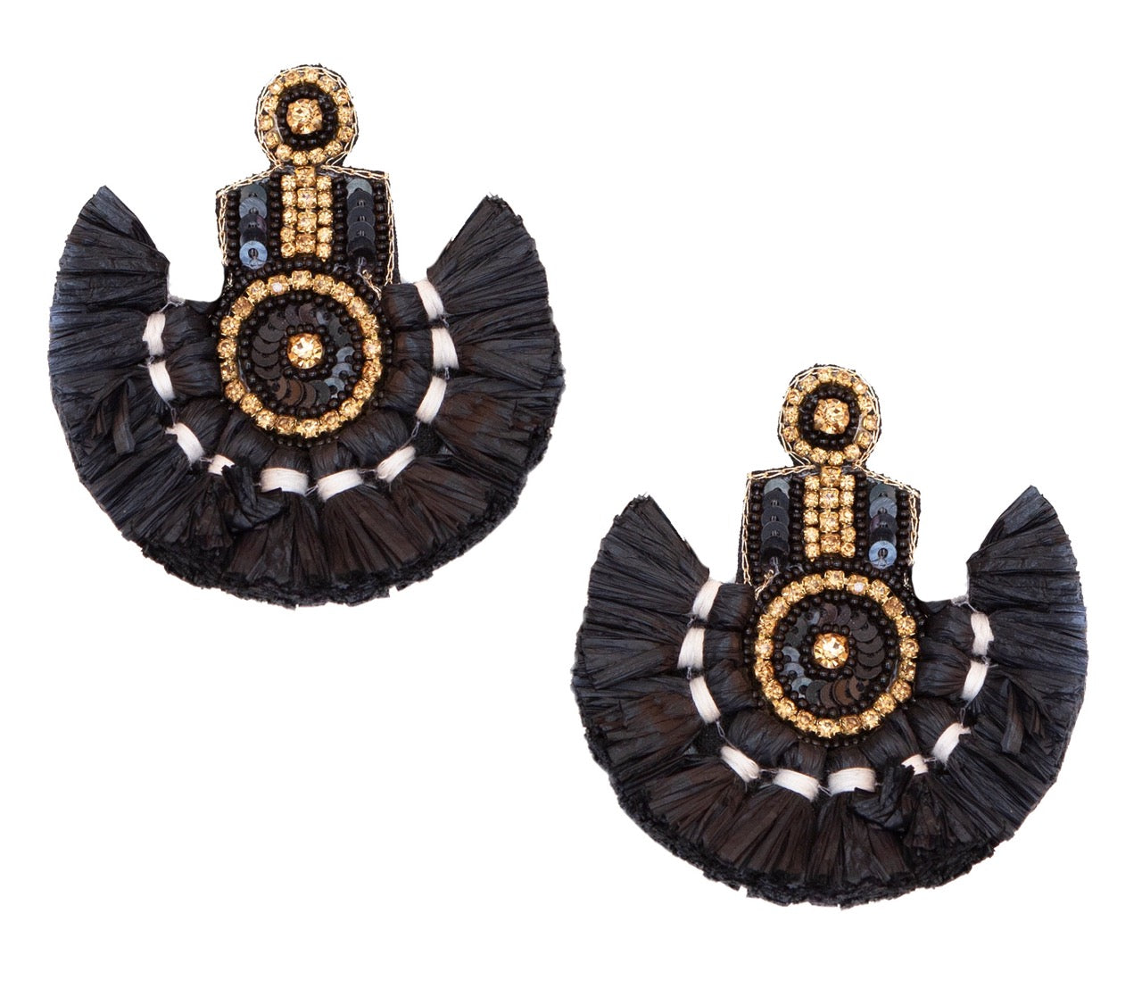 Our Cleopatra earrings feature an exotic set of mini tassels that create a plush, fanned-out shape, combined with sequins and petit rhinestones. Team this pair with a classy outfit to enhance your look.