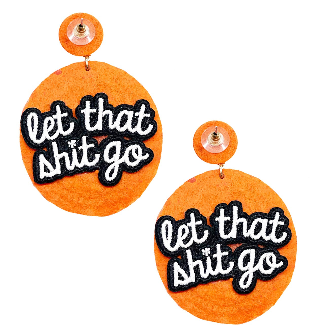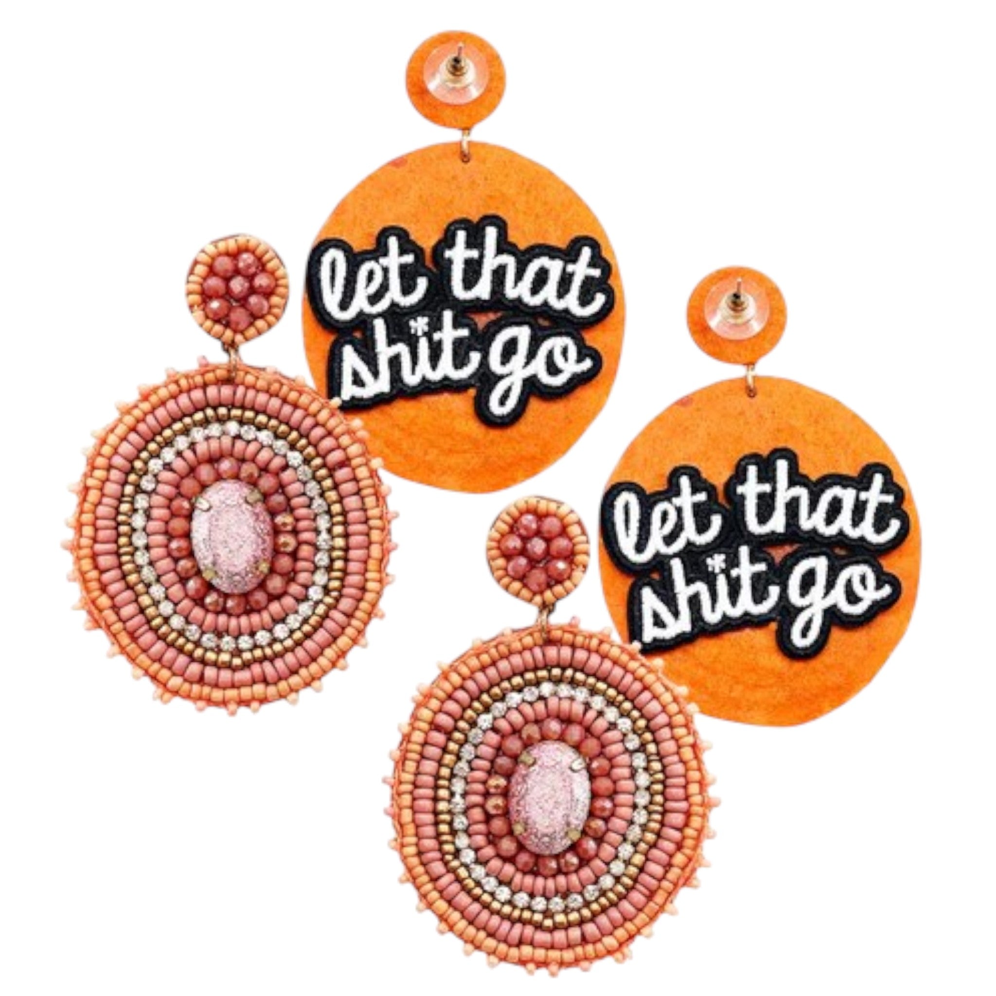 Vibrant Coral Design: 🌟 Featuring a colorful beaded design with a playful "Let That Shit Go" patch, these earrings add a touch of fun and flair to your look.