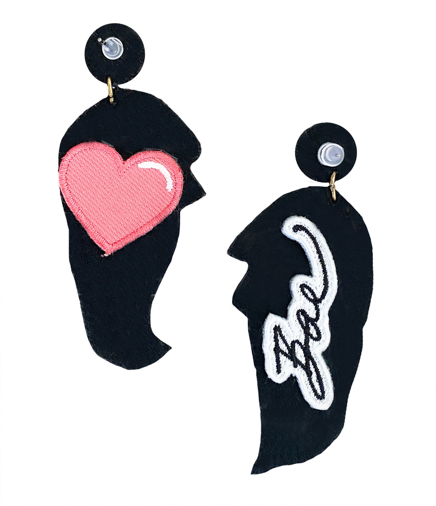 ❤️ Playful Patch Accents: Unique "Feel" text and heart embroidery patches make these earrings stand out.
