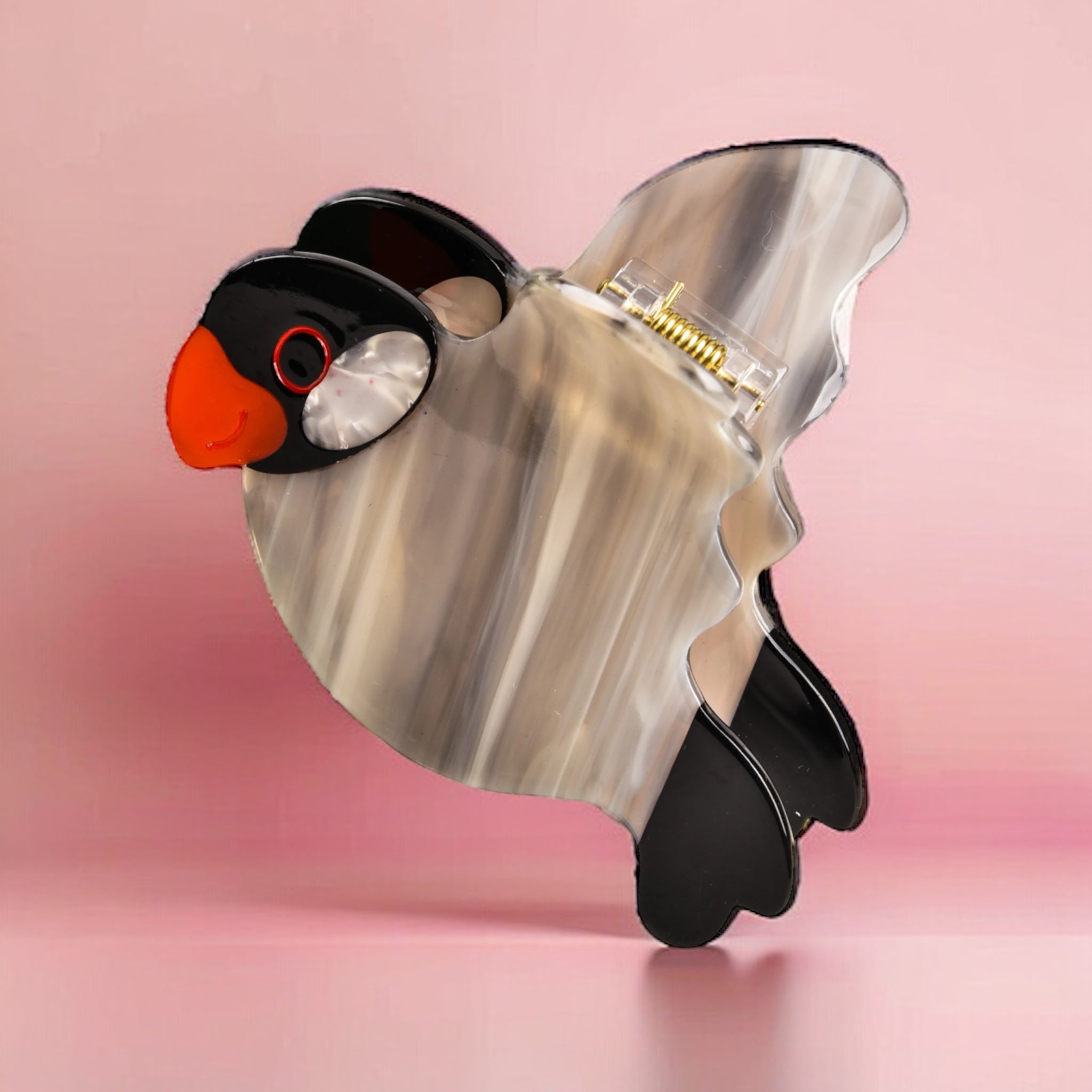 Embrace the ethereal beauty of nature with our captivating Grey Feather Flight Hair Clip. Adorned with sparkling accents, this hair clip adds a touch of radiant sophistication to any ensemble. Whether you're soaring to new heights of fashion or attending a special occasion, the Grey Feather Flight Hair Clip will elevate your look with its graceful charm.