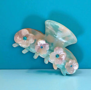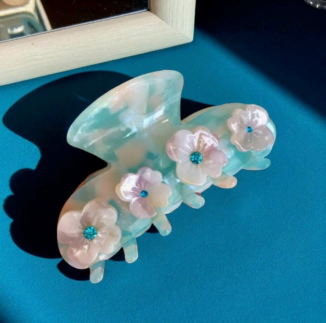 This charming floral hair clip features a pastel design adorned with beautiful blossoms, perfect for adding a touch of elegance to any hairstyle. Crafted from durable acrylic, it's an on-trend accessory that suits various occasions, ensuring your look remains chic and stylish. Lightweight and easy to use, embrace the beauty of nature in your hair with this delightful piece.