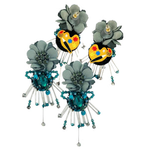 Beaded Floral Drop Design 💙: Delicate bead fringe adds shimmer and movement to the sculpted petals and colorful heart centers.