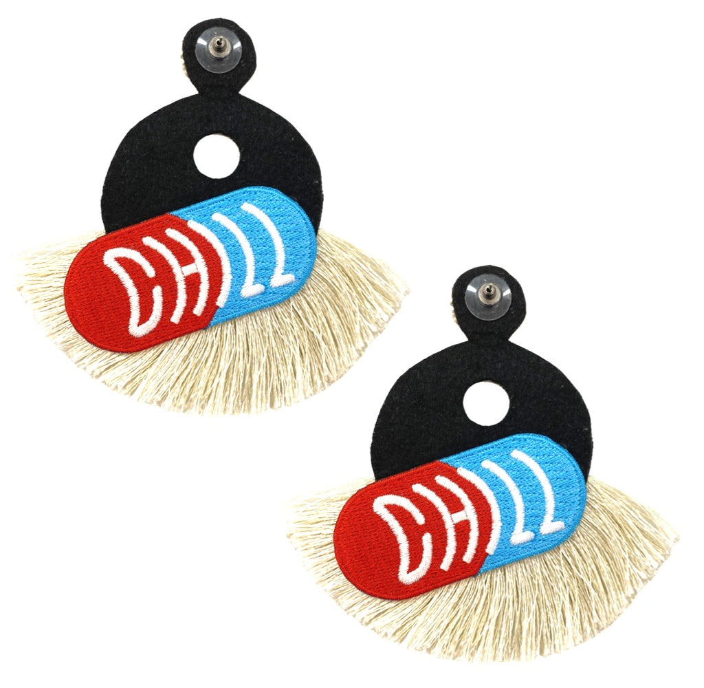 Unique Patch Design: The "Chill Pill" patch on the back adds a fun, unexpected twist that makes these earrings stand out.