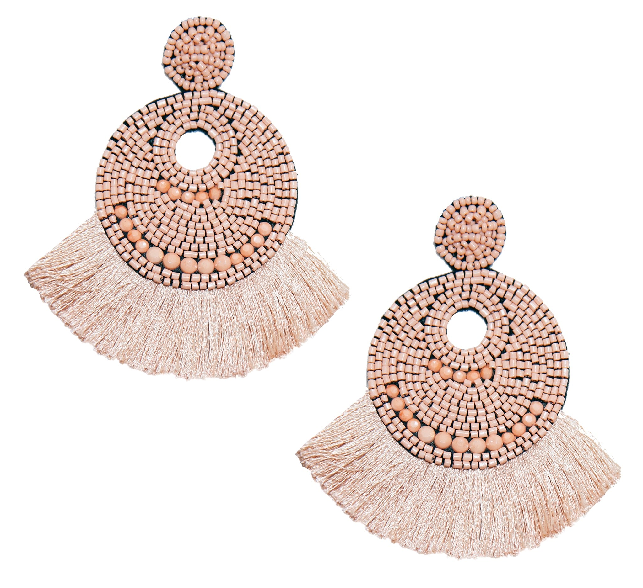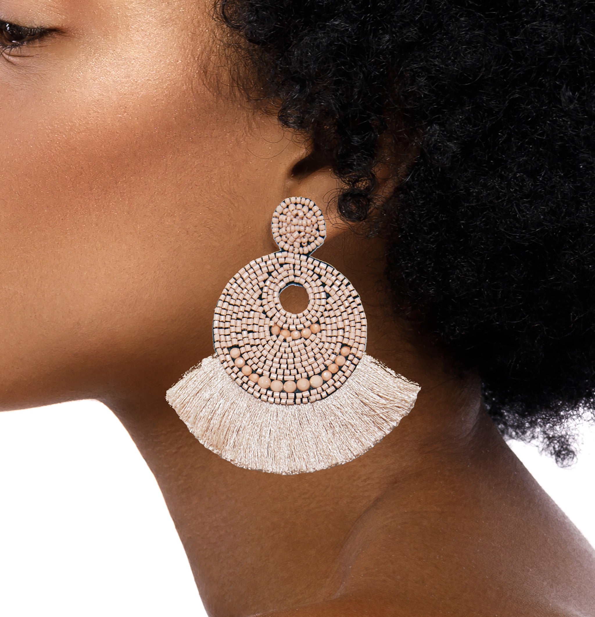 Pair these Fringe Benefits Nude Earrings with a flowing maxi dress or a chic beach outfit to create a look that's effortlessly stylish. They're also perfect for adding a bohemian flair to casual denim or a simple top.