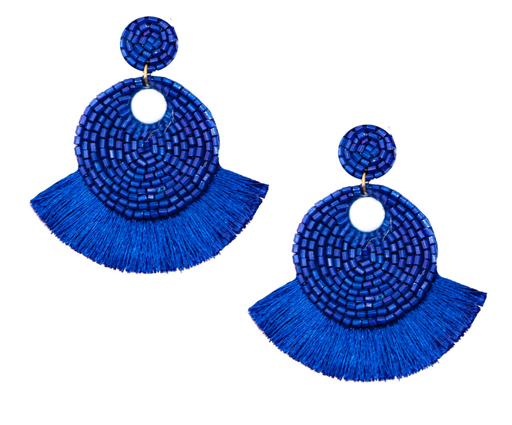 Elevate your look with the Fringe Benefits Petit Blue Earrings, a perfect blend of bold design and intricate craftsmanship. These handmade earrings feature vibrant blue fringe details, making them an eye-catching accessory for any outfit. Perfect for adding a pop of color and style, these statement earrings are both lightweight and comfortable, ideal for all-day wear.