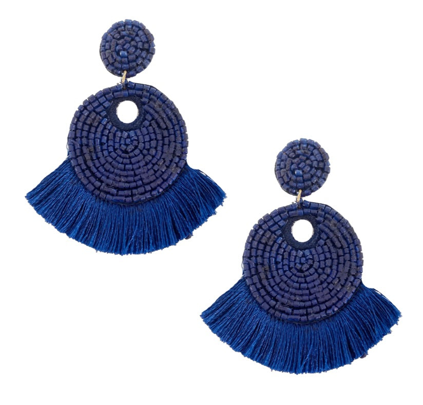 You know, blue is the color of the ocean, the skies, and this set of Fringe Benefits Petit Earrings in Navy. Warning: wearing these earrings will bring a sense of complete peace and serenity to the owner. These fringe and beaded earrings are the perfect touch to any outfit to have you feeling like you are lounging on the beach.