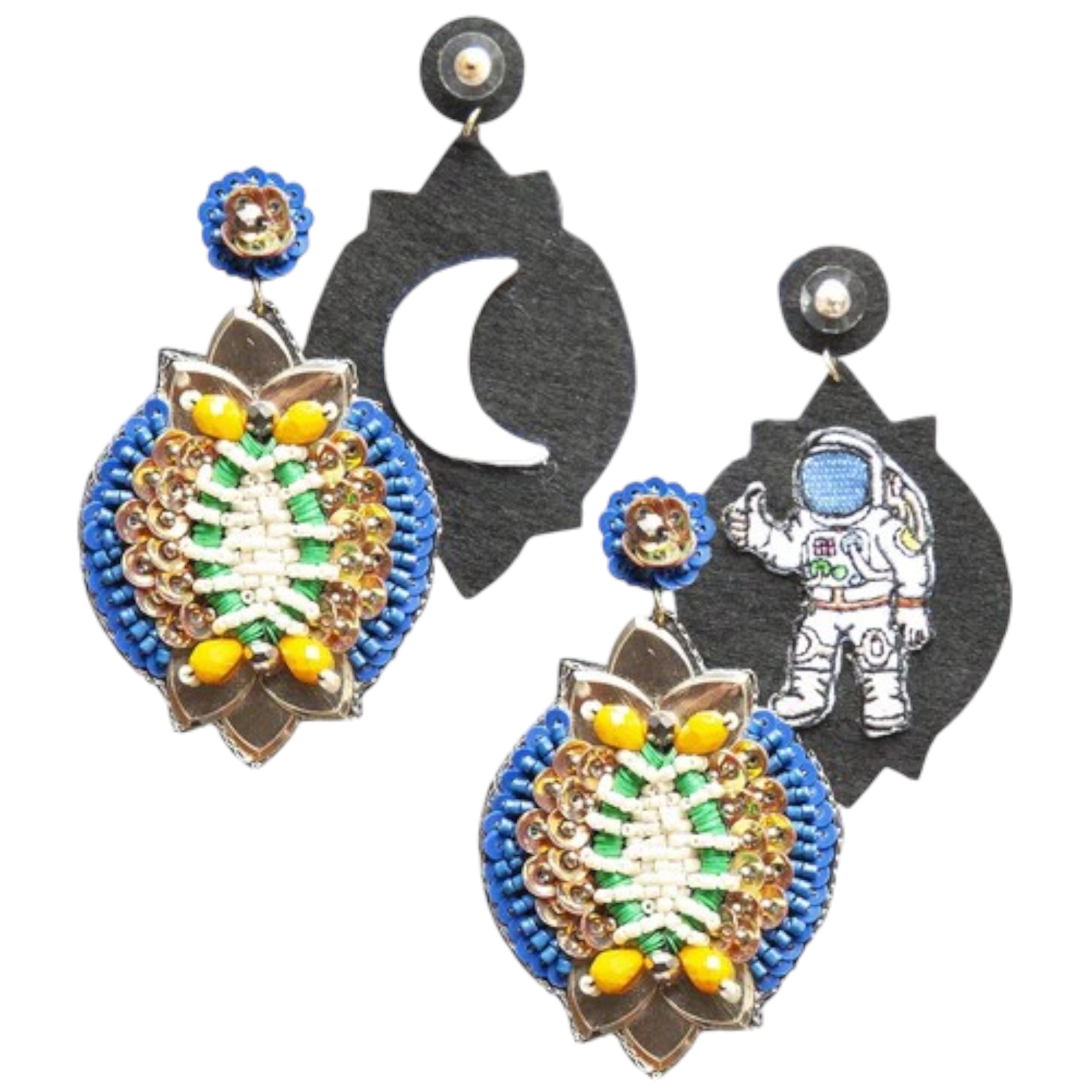 Unique Design: The Galactic Glamour Blue Earrings feature a striking blue hue with a playful "Rocketman" patch.