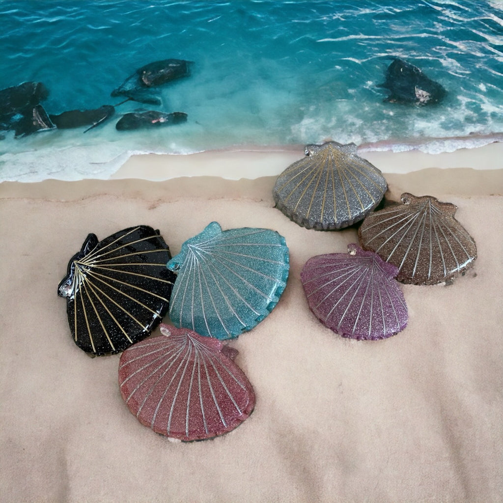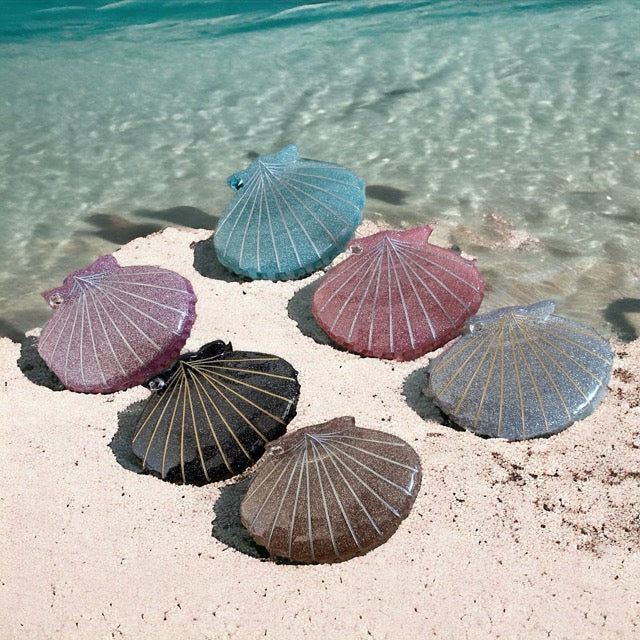 Pink Hair Clip with Glitter and Seashell: This eye-catching hair clip features a delicate seashell adorned with shimmering pink glitter. Its unique design will add a touch of coastal flair to any outfit, perfect for summer days and beachy vibes.