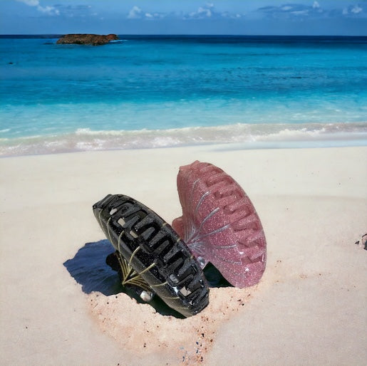 Make a splash with our stunning Pink Glitter Seashell Hair Clip! This oversized seashell clip is sure to turn heads with its eye-catching pink and gold glitter accents. Its elegant design adds a touch of glamour to any outfit, making it perfect for special occasions, beach days, and everyday wear. Crafted from durable materials, this clip ensures a secure and comfortable hold without snagging or damage. Whether you're looking to add a pop of color or elevate your hair game, our Pink Glitter Seashell Hair Clip is the perfect choice.