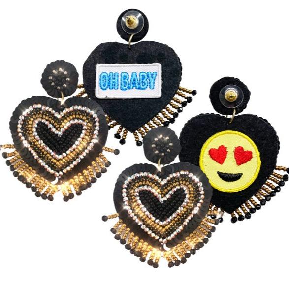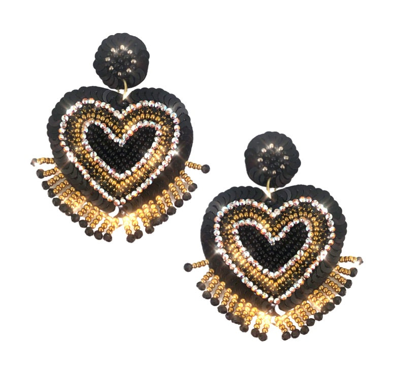 Add a touch of romance to any outfit with the Heartbreaker Noir Earrings. These statement pieces feature charcoal hues, smoldering metallic accents, and intricate beading, creating a dramatic look perfect for evening wear or adding flair to your everyday style.