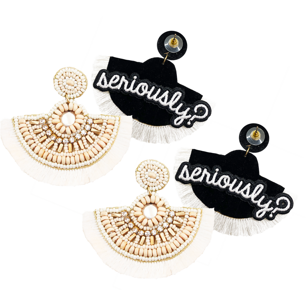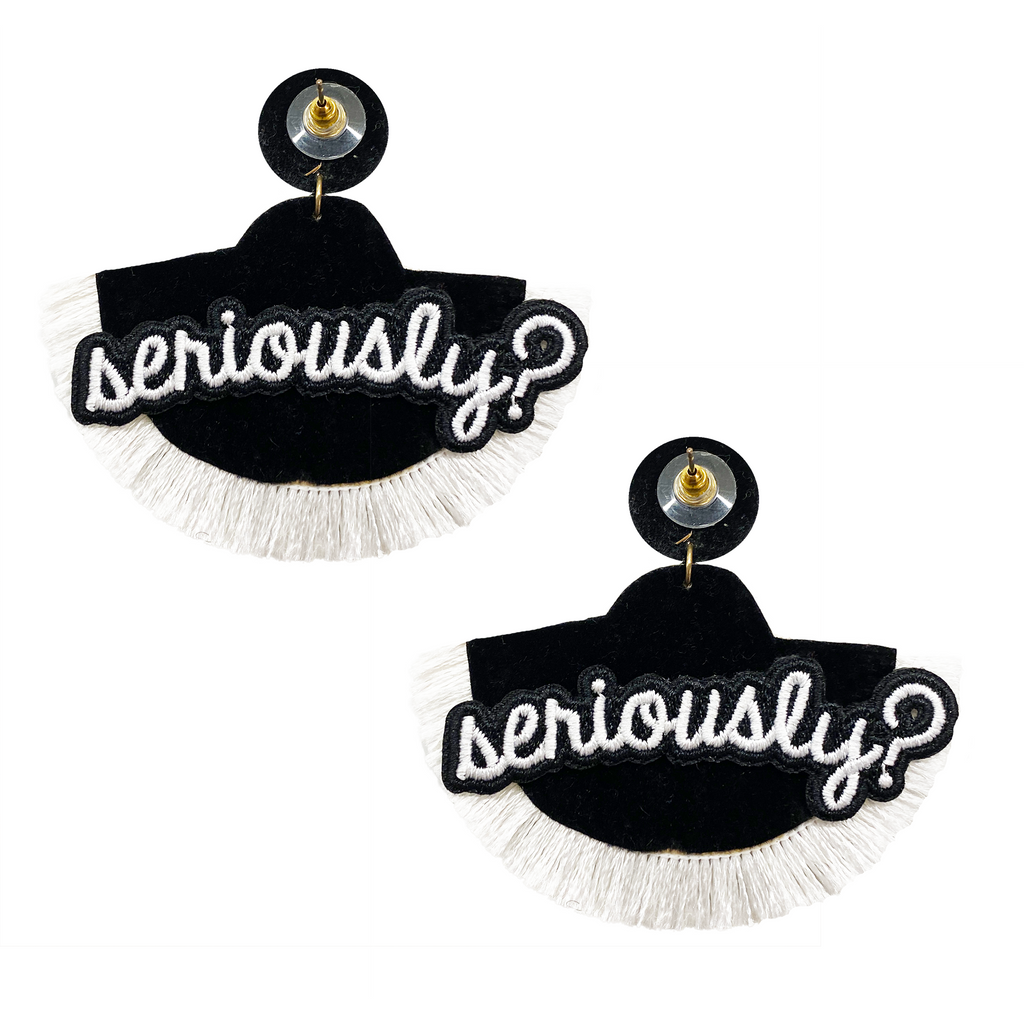 💡 Cheeky Back Patch: The playful "Seriously?" patch adds a unique and fun twist to these chic earrings.
