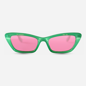 Introducing our stunning green cat-eye sunglasses with pink lenses, the ideal accessory for stylish women. These trendy sunglasses enhance your look while providing UV protection. Perfect for summer outings or beach vacations, they combine comfort with chic design, making them a must-have addition to your accessory collection.
