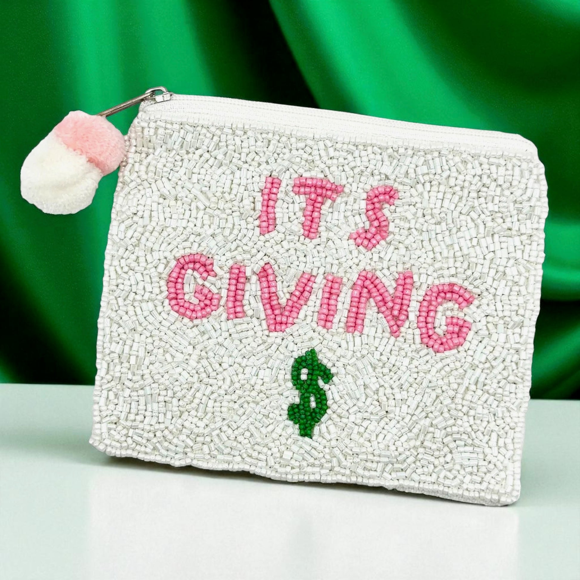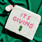This stylish beaded clutch features an eye-catching "IT'S GIVING" design, making it the perfect accessory for fashion-forward women. With a unique textured finish and vibrant colors, this pouch is both functional and fashionable for any occasion, from day events to parties.