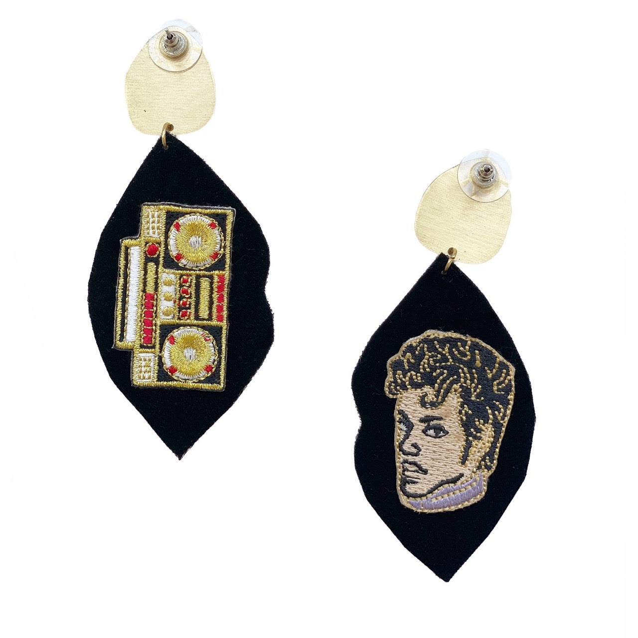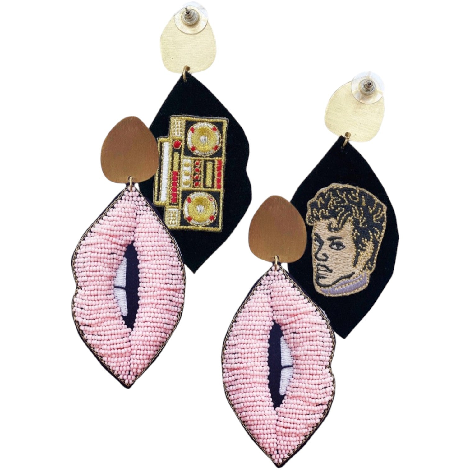 Edgy Mixed Media Details: With embroidered lips and graphic elements, these earrings are tiny wearable protest signs.