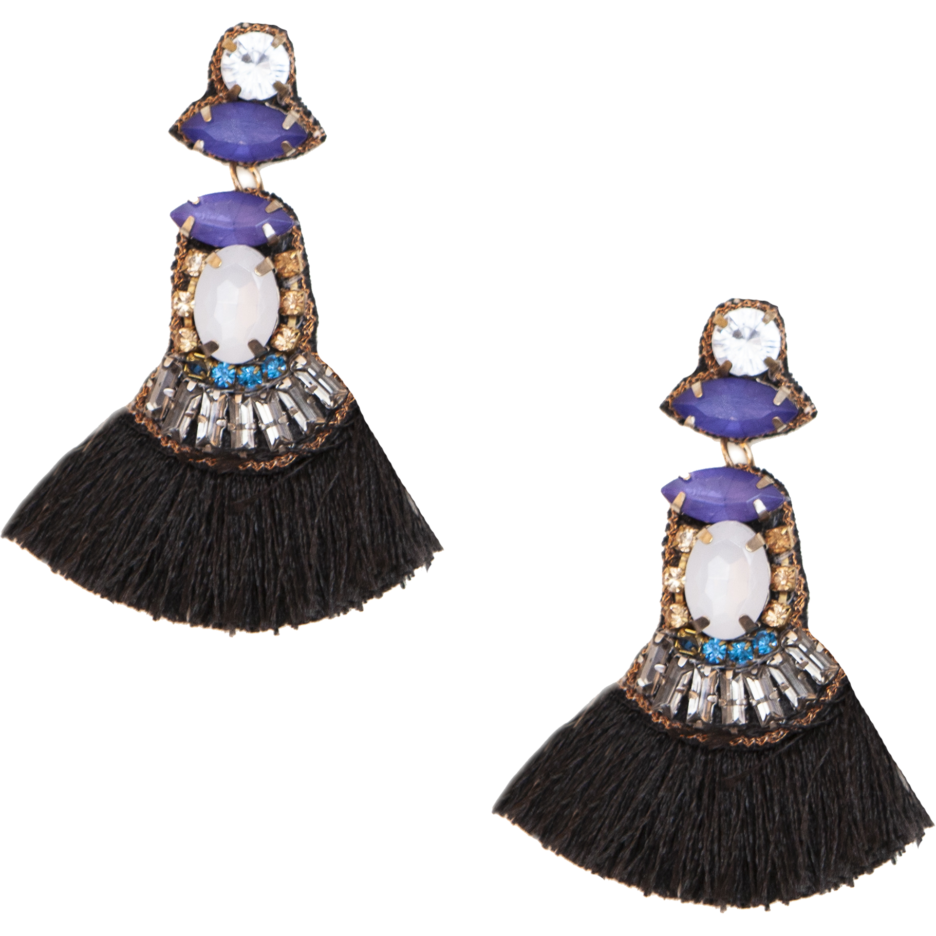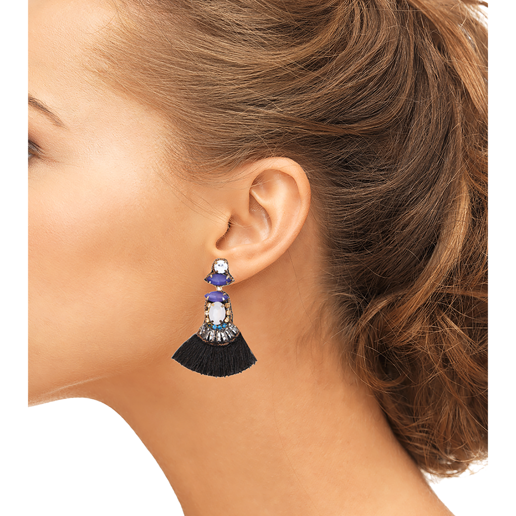 Purple and Blue Tassel Statement Earrings 💜: Elegant gemstones and silky fringe combine for earrings that are somehow loud and classy.