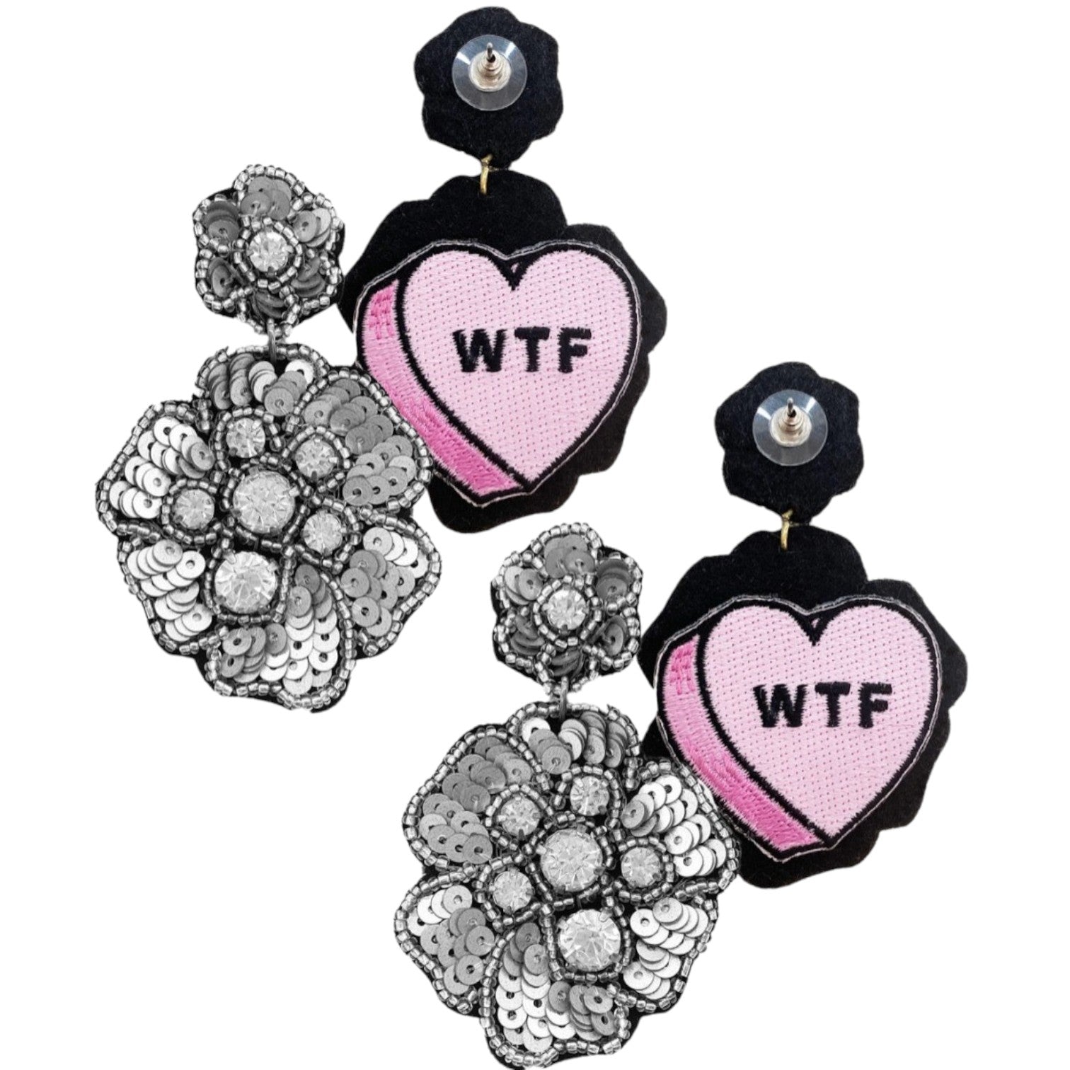 Playful Edge: The "WTF" patch adds a touch of humor and attitude, making these earrings a great conversation starter.