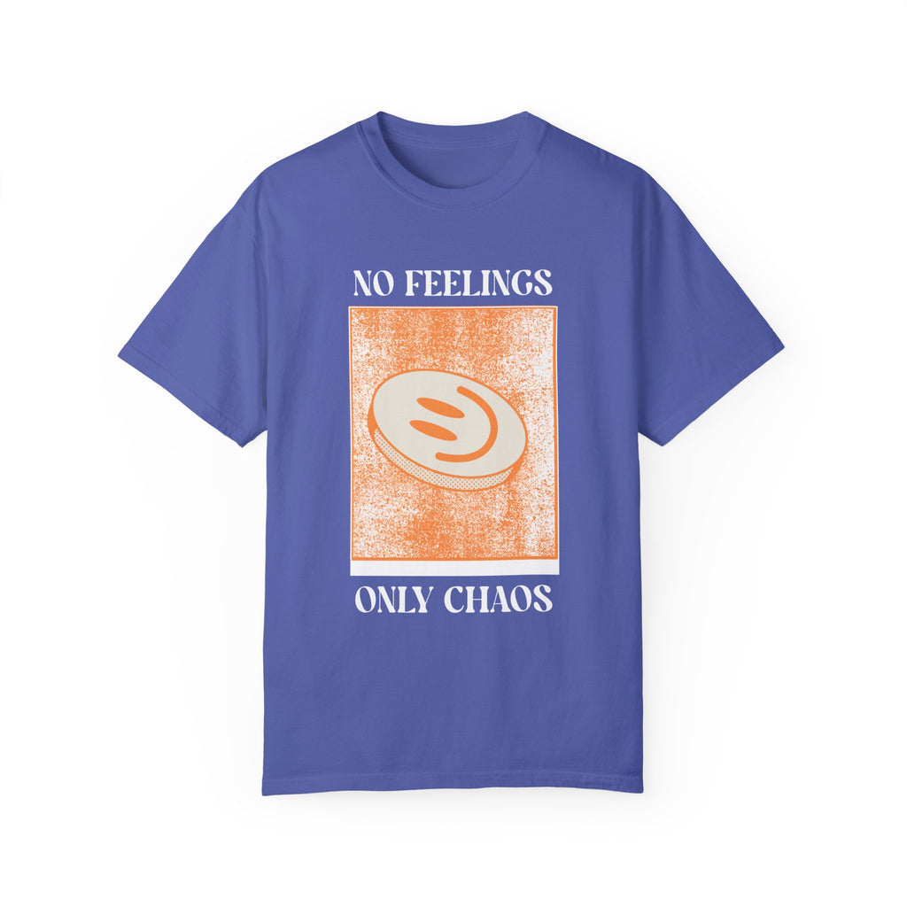 Embrace your chaotic side with our No Feelings Only Chaos unisex tee. Show off your playful and quirky personality in this unique and fun shirt. Perfect for those who don't take themselves too seriously. Join the chaos now!