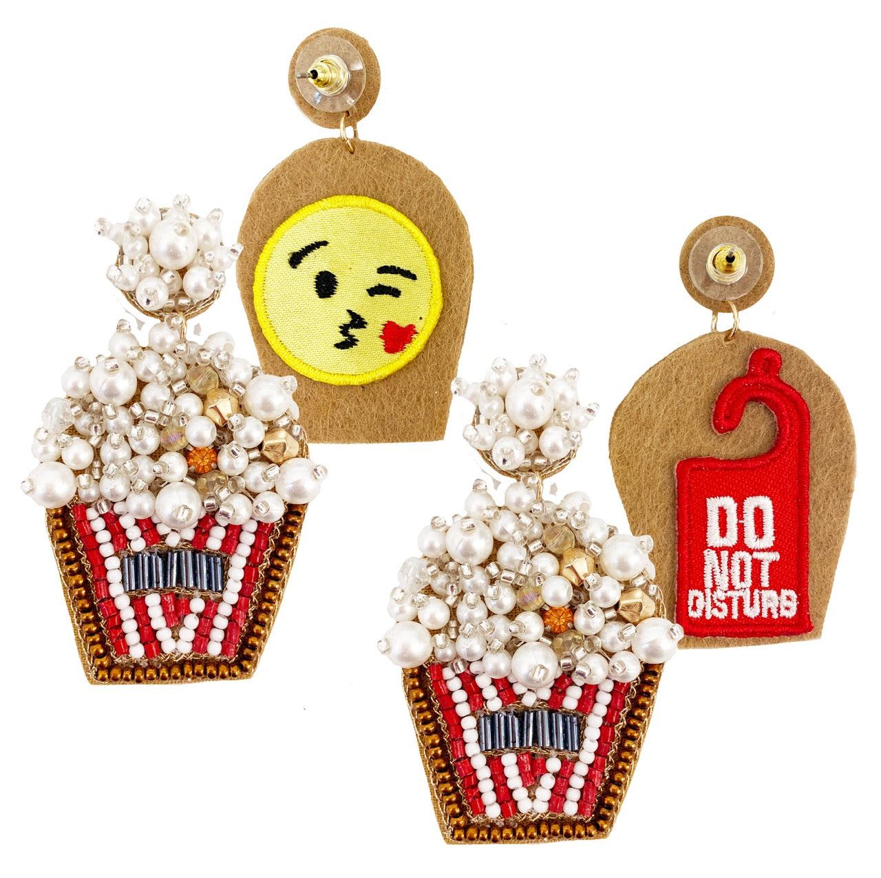 • Unique Design: The combination of popcorn, pearl beads, and playful patches makes these earrings a standout accessory that’s sure to draw compliments.