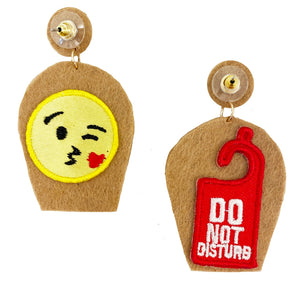 • 💬 Kissy Emoji & "Do Not Disturb" Patches: Each earring is adorned with a Kissy Emoji and a "Do Not Disturb" patch, adding a quirky and playful twist to the design.