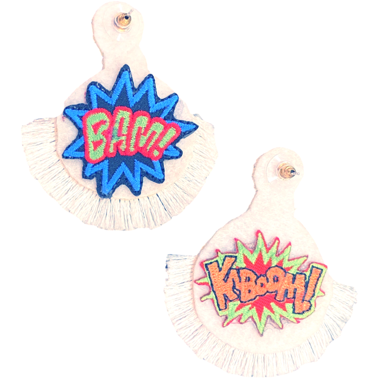 🎇 Space-Themed Design: The unique space-inspired design with Bam! Kaboom! patches adds a playful yet glamorous vibe, making these earrings stand out.