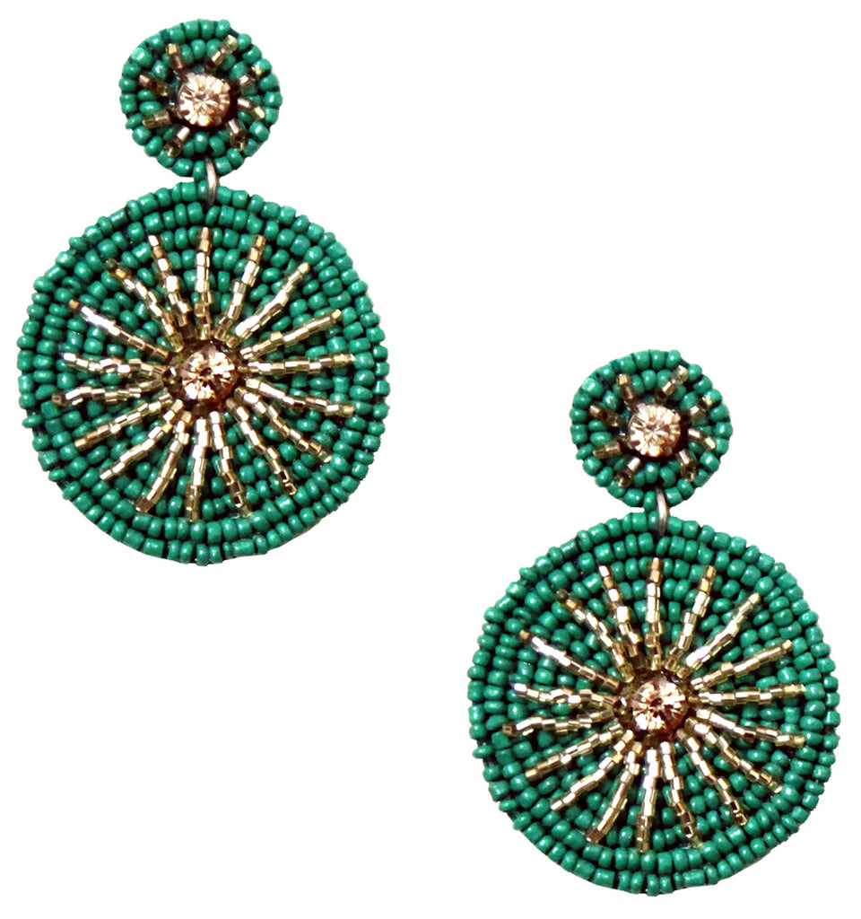 Elevate your style with our Starburst Emerald Earrings, a versatile accessory for any occasion. These handcrafted, beaded earrings feature a refined circular silhouette in a stunning green hue, perfect for adding a pop of color to any outfit. Lightweight and eye-catching, they’re designed to make a statement while remaining comfortable to wear all day.