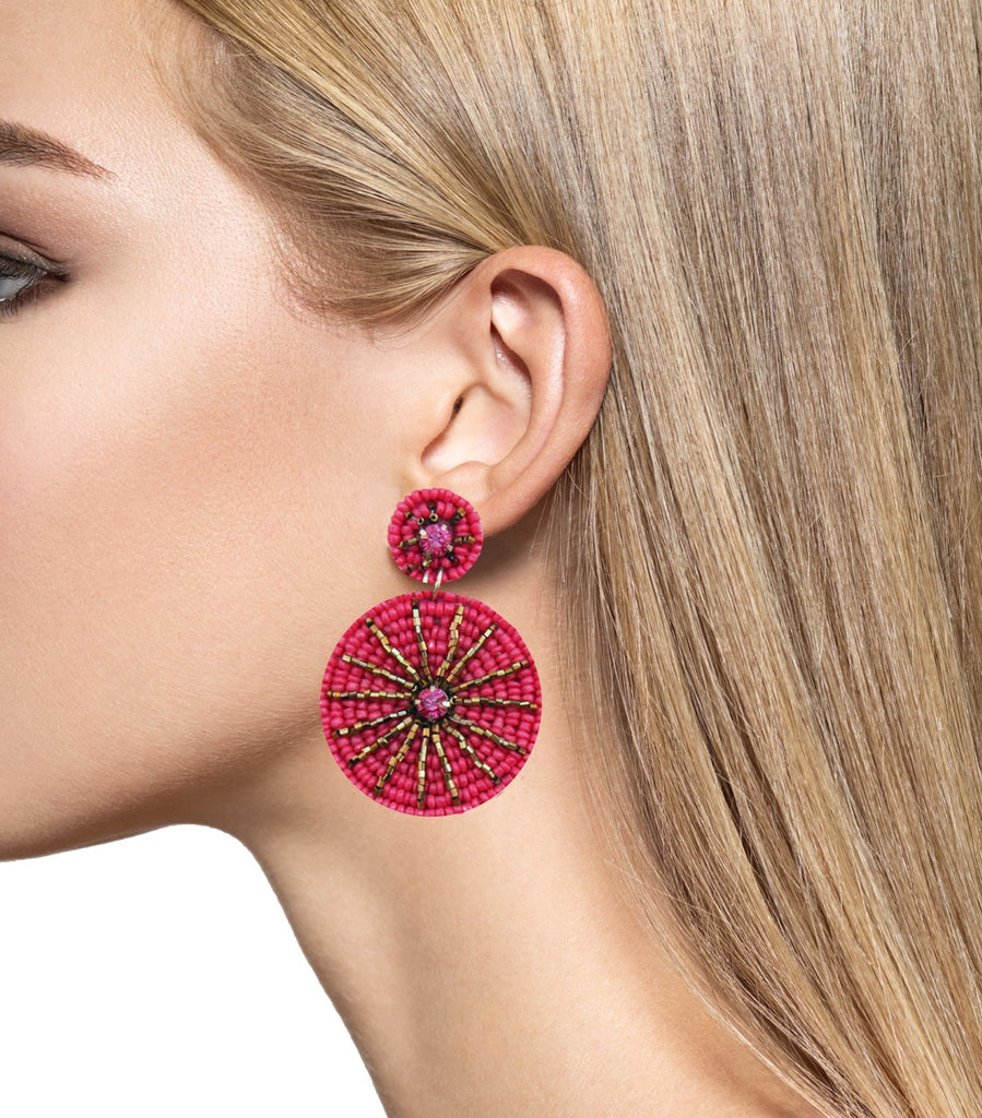 Pair these "Starburst Fuchsia Earrings" with a simple outfit to let their vibrant color and fun design take center stage. Whether you're dressing up for a night out or adding a touch of fun to your everyday look, these earrings will add that perfect pop of color and personality.