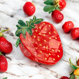This vibrant strawberry hair clip adds a fun touch to any hairstyle, making it perfect for both casual and special occasions. Its lively red hue and playful design ensure it stands out, offering a unique fashion accessory that showcases your personality.