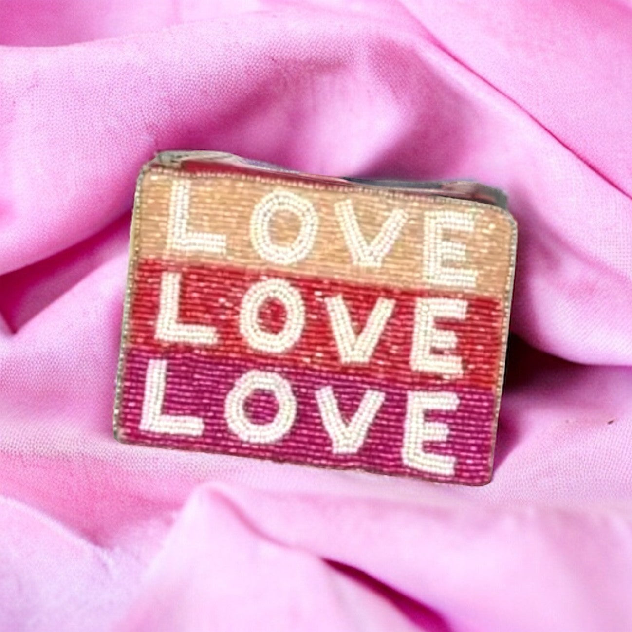The Triple Love Beaded Coin Pouch will take your style to the next level! This charming pouch features an intricate pattern with eye-catching "LOVE" beads, making it a perfect way to show your friends (and foes) just how much you care. Compact yet stylish, this pouch is ideal for carrying your small essentials while adding a touch of love to your look.