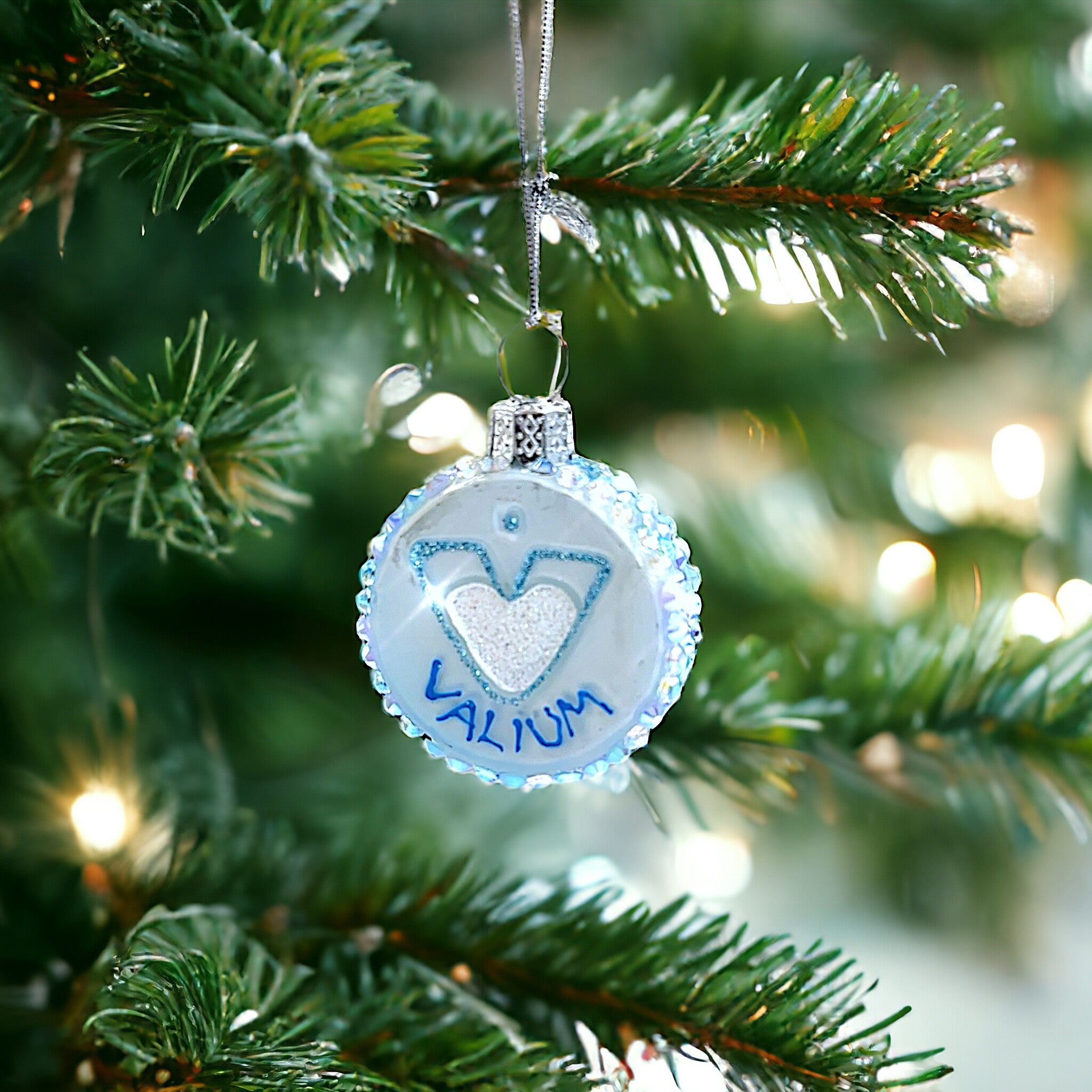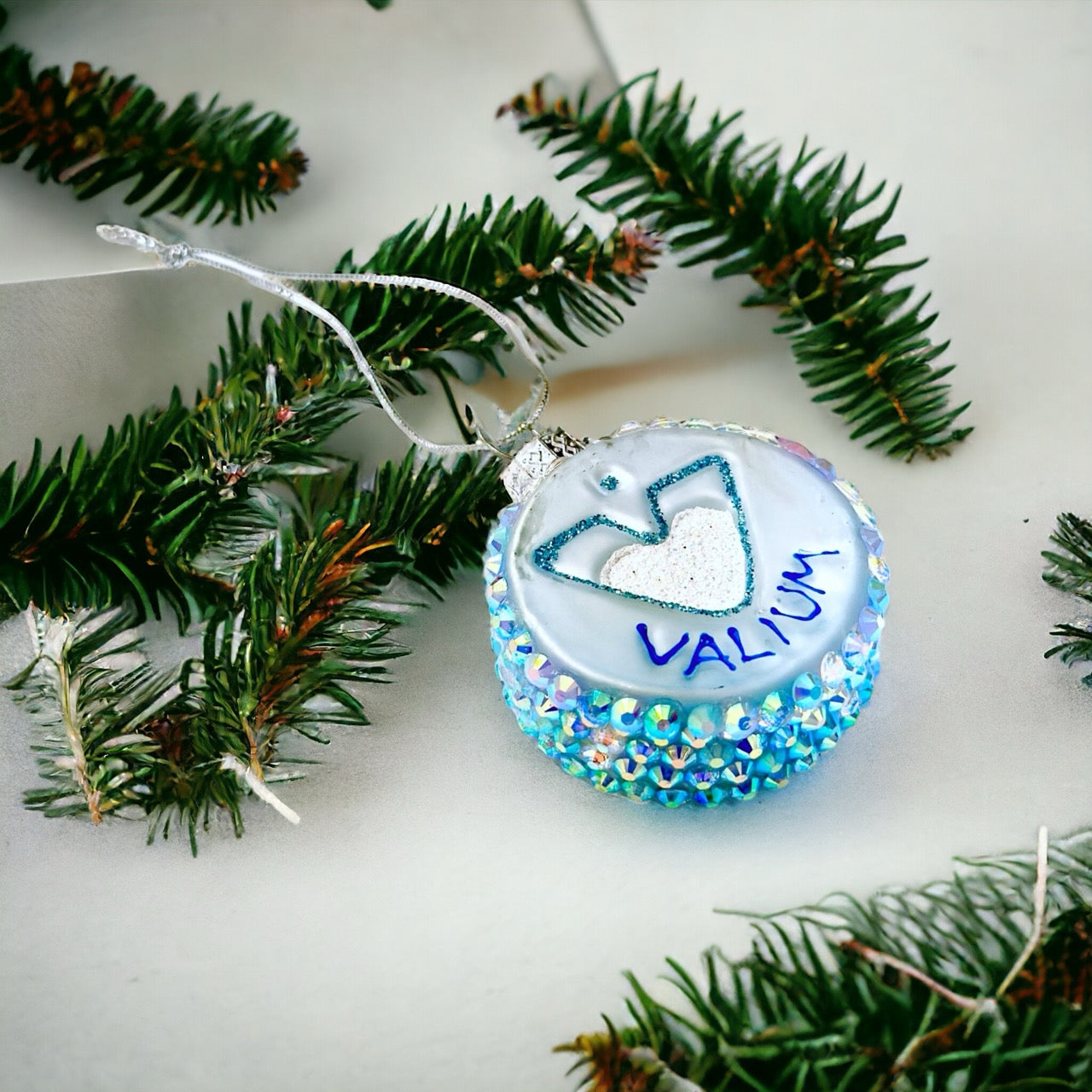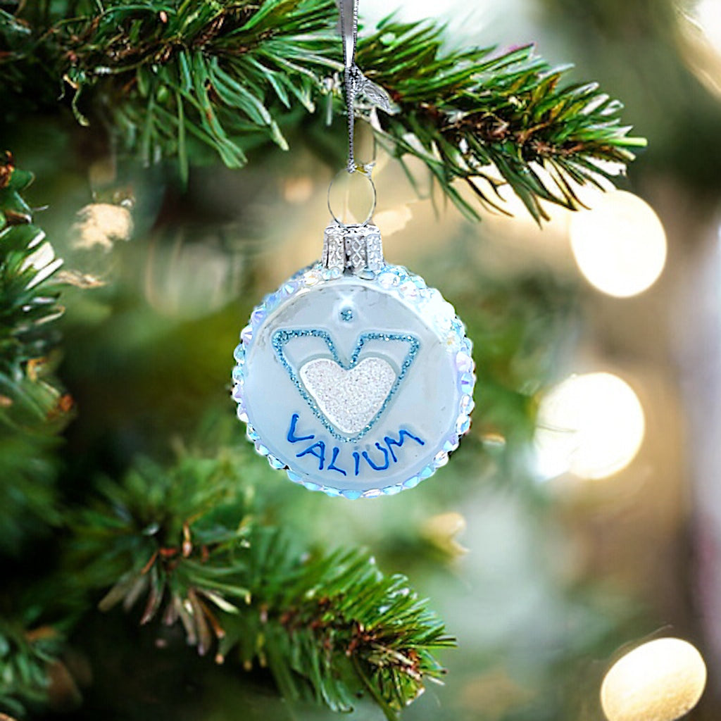 💊 Valium-Inspired Design: This ornament features a playful design inspired by Valium, perfect for adding a touch of humor to your holiday decorations.