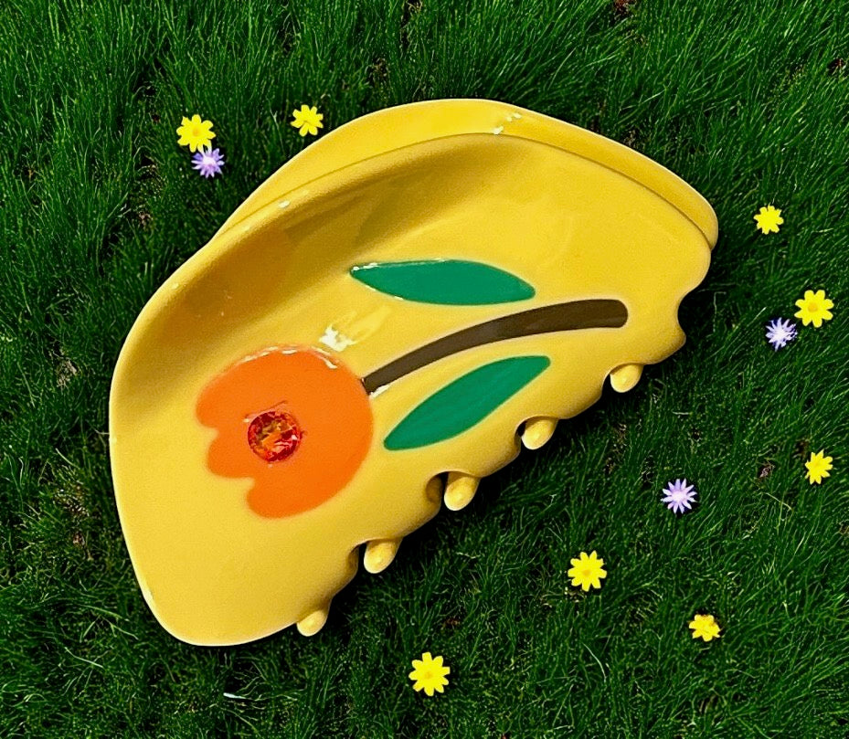This vibrant yellow flower hair clip combines style and functionality, making it an essential accessory for any fashion-savvy woman. Featuring a charming floral design, it adds a pop of color to your look while securely holding your hair in place. Perfect for everyday wear or special occasions, this claw clip enhances your hairstyle effortlessly.