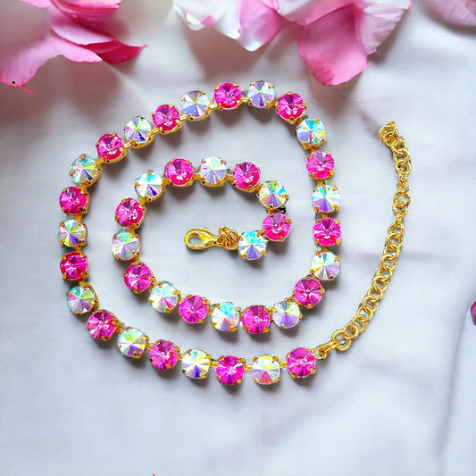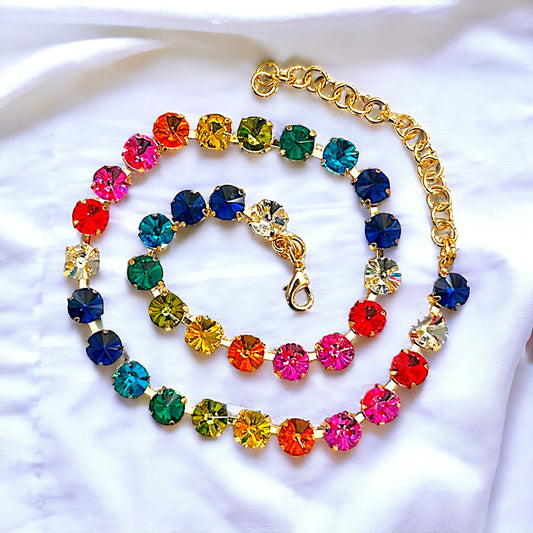 Crystal Gemstone Necklace (Holiday Red and Green)