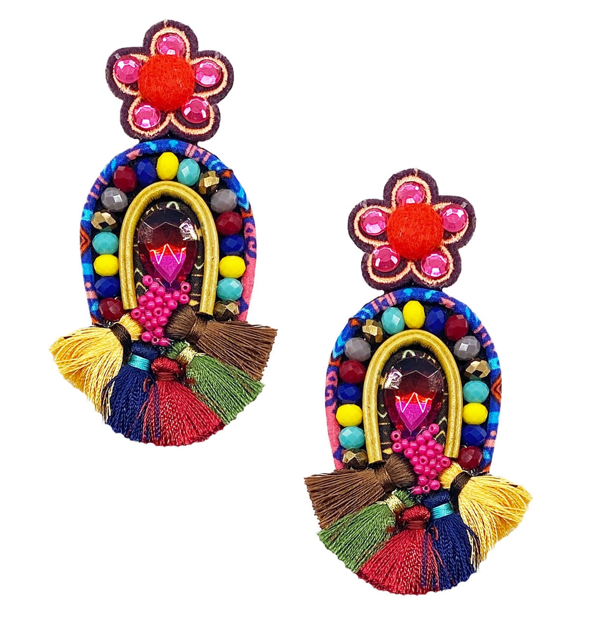 🌈 Multicolored Tassel Fringes: The playful tassel fringes add movement and a splash of color, making these earrings a standout piece for any festive occasion.