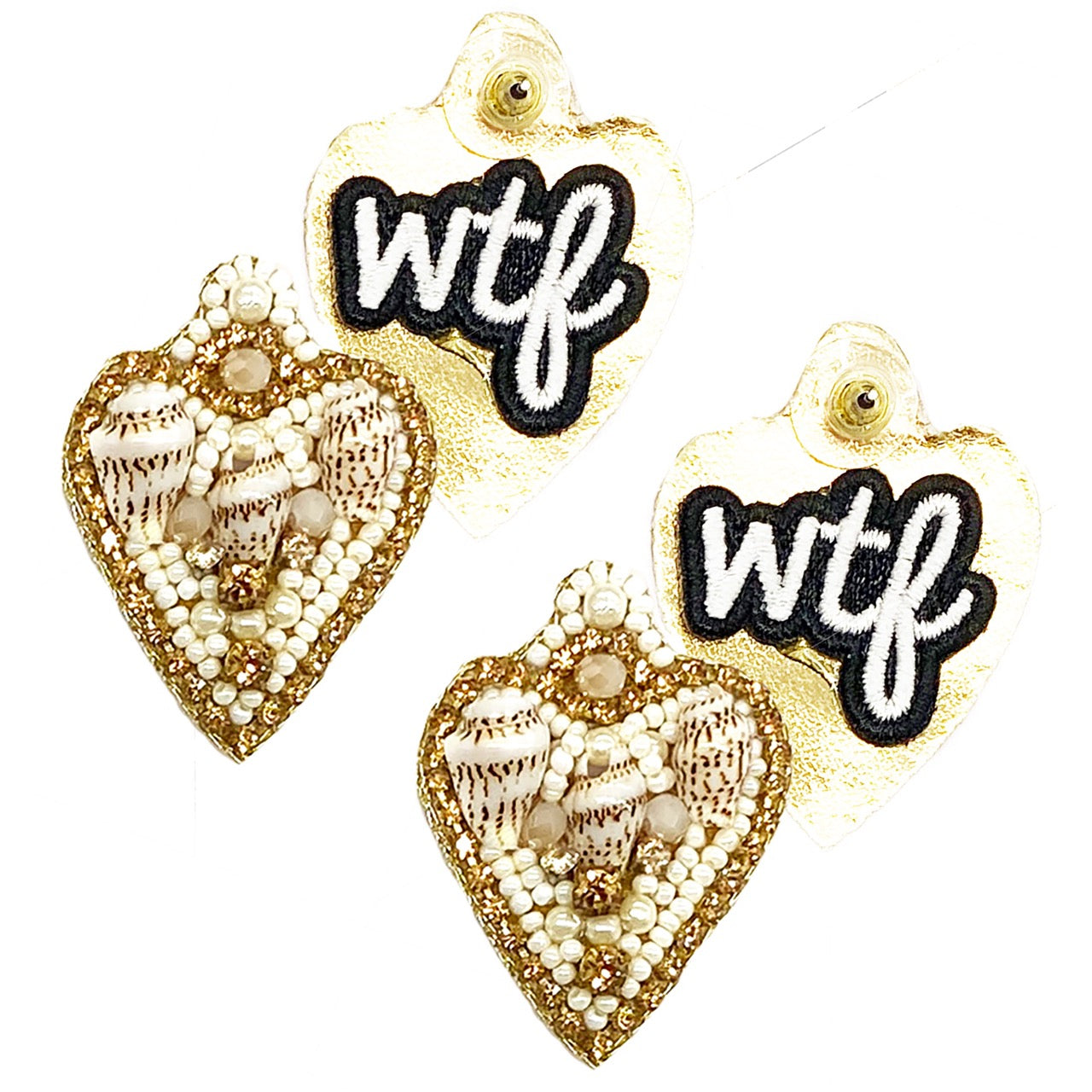 Unique Design: Combining heart-shaped shells with a bold WTF patch, these earrings stand out as a one-of-a-kind accessory.