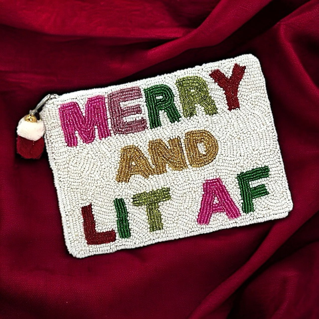 Playful & Festive: The "Merry and Lit AF" message ensures this pouch is a standout accessory that adds a fun, holiday twist to any look.