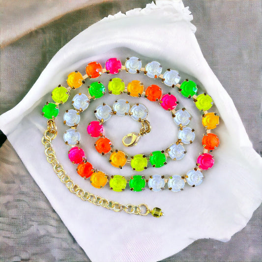 Crystal Gemstone Necklace (Holiday Red and Green)