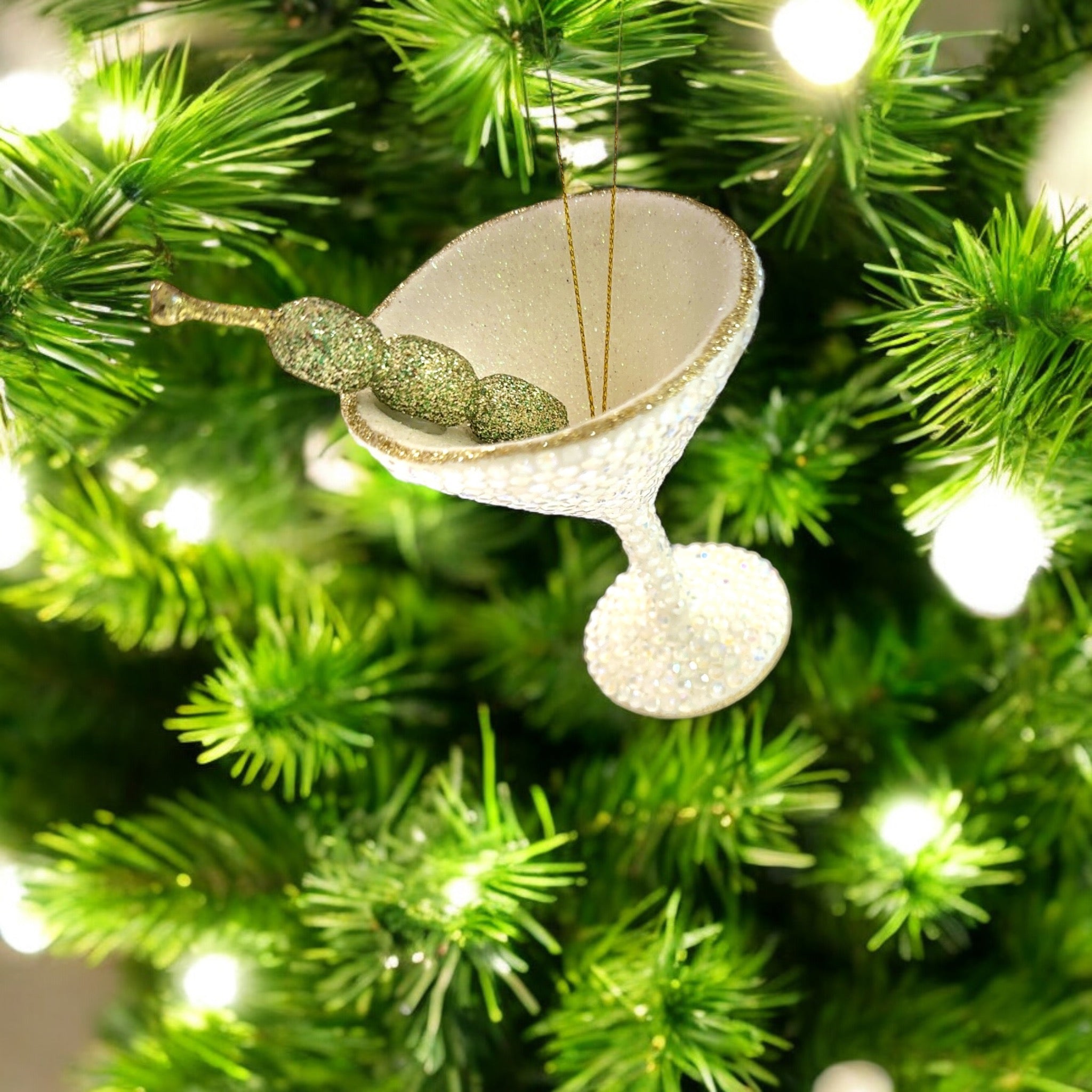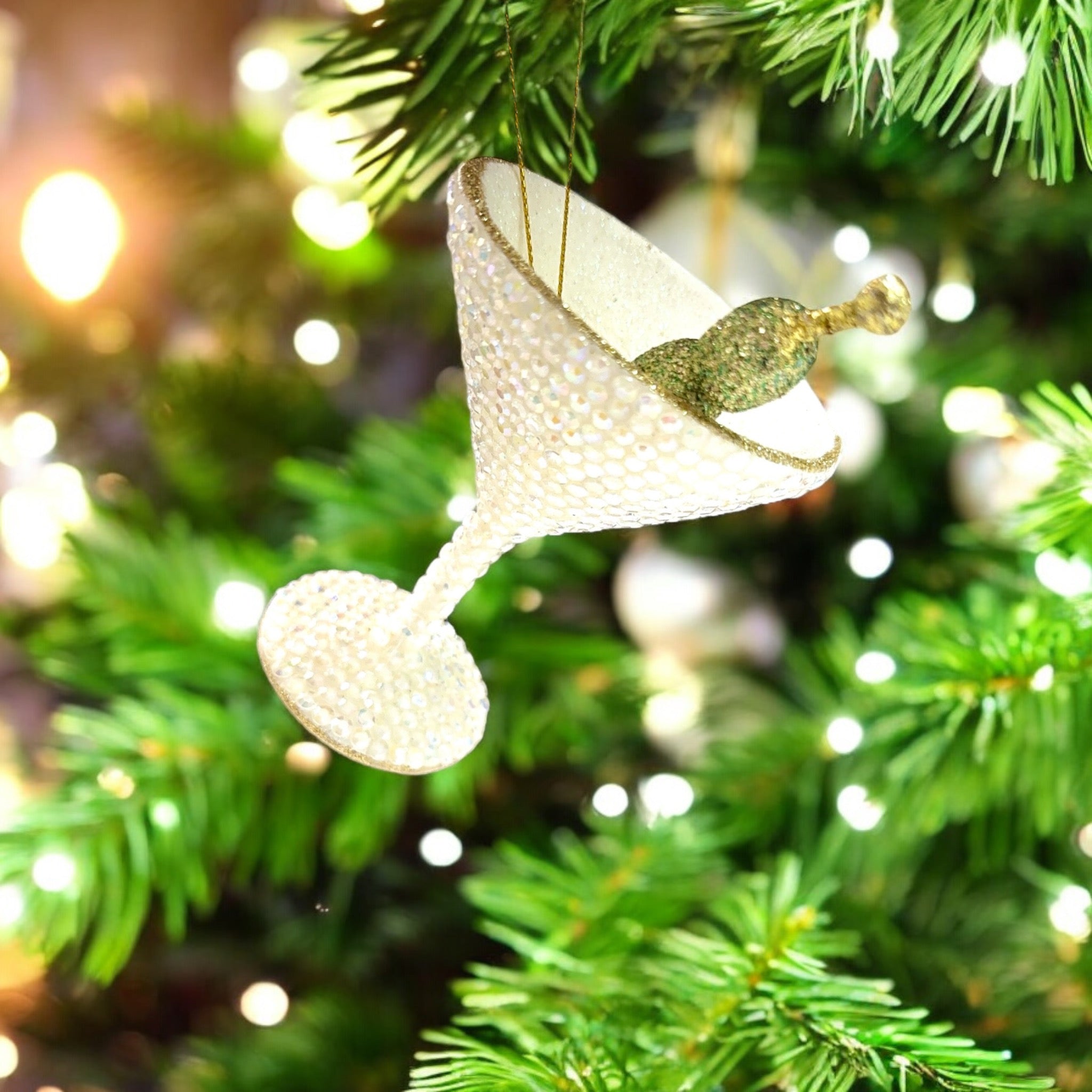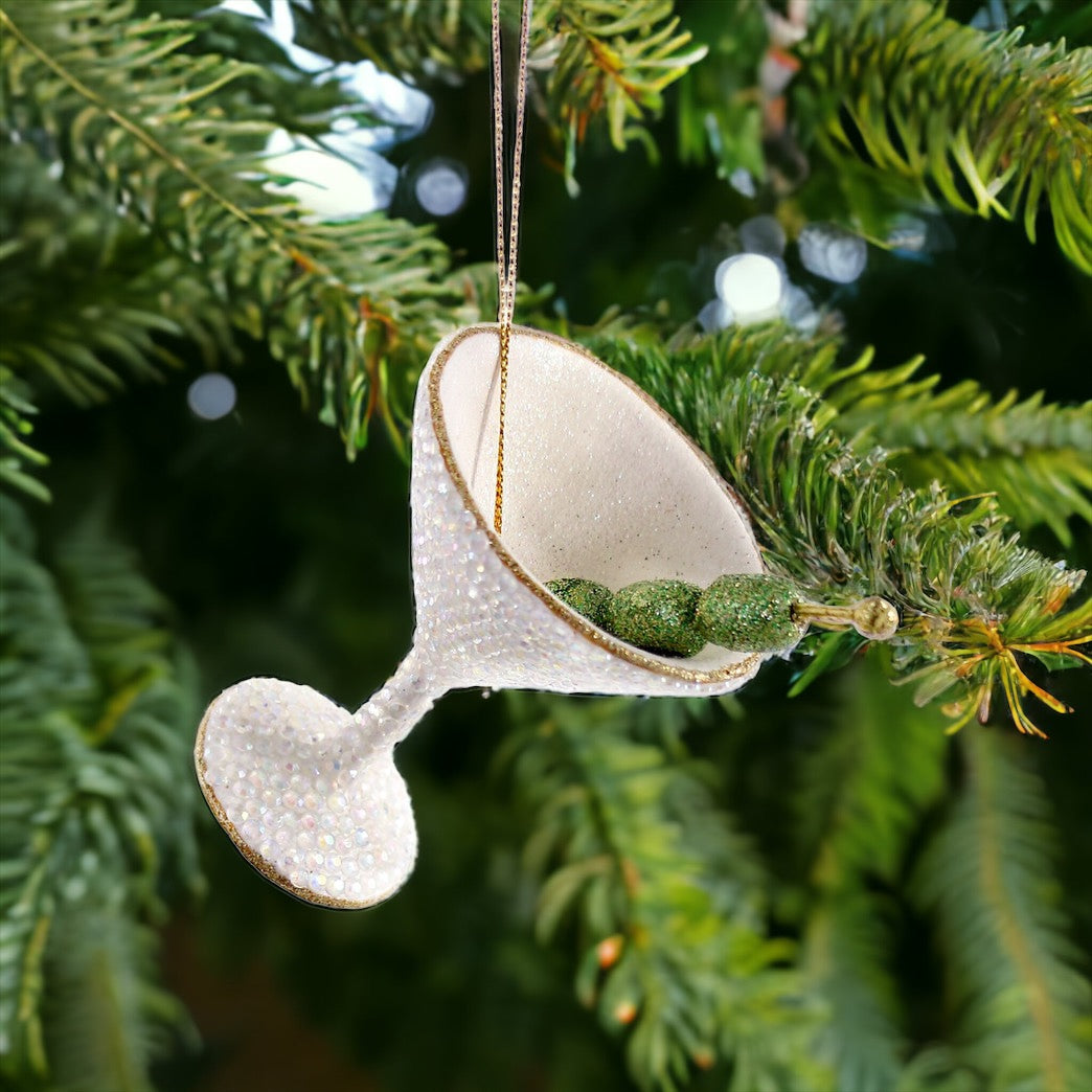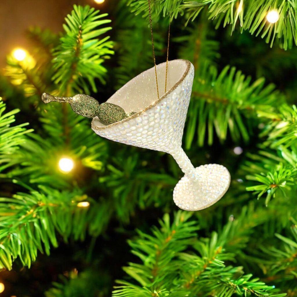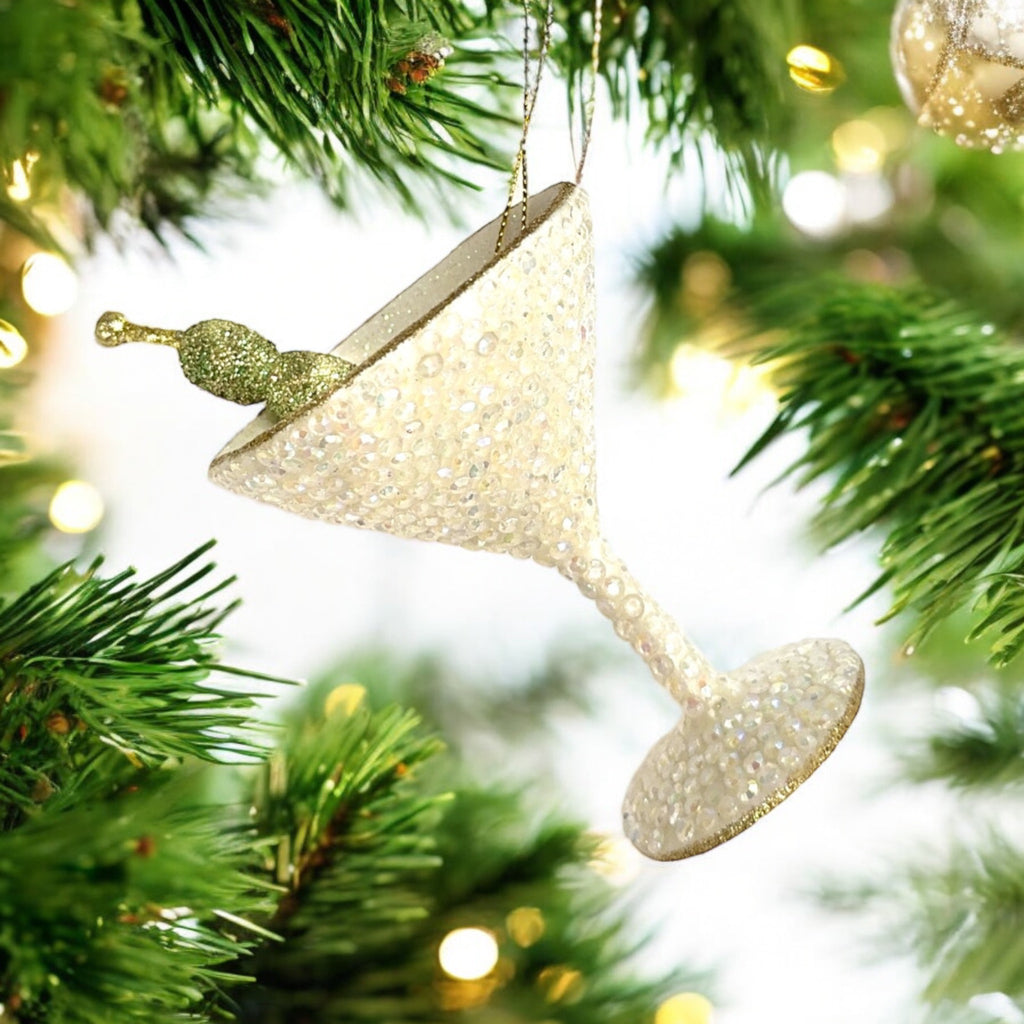 Alt. Text description Option 3: Fun resin Christmas ornament shaped like a martini glass with rhinestones, adding a playful touch to your holiday tree.