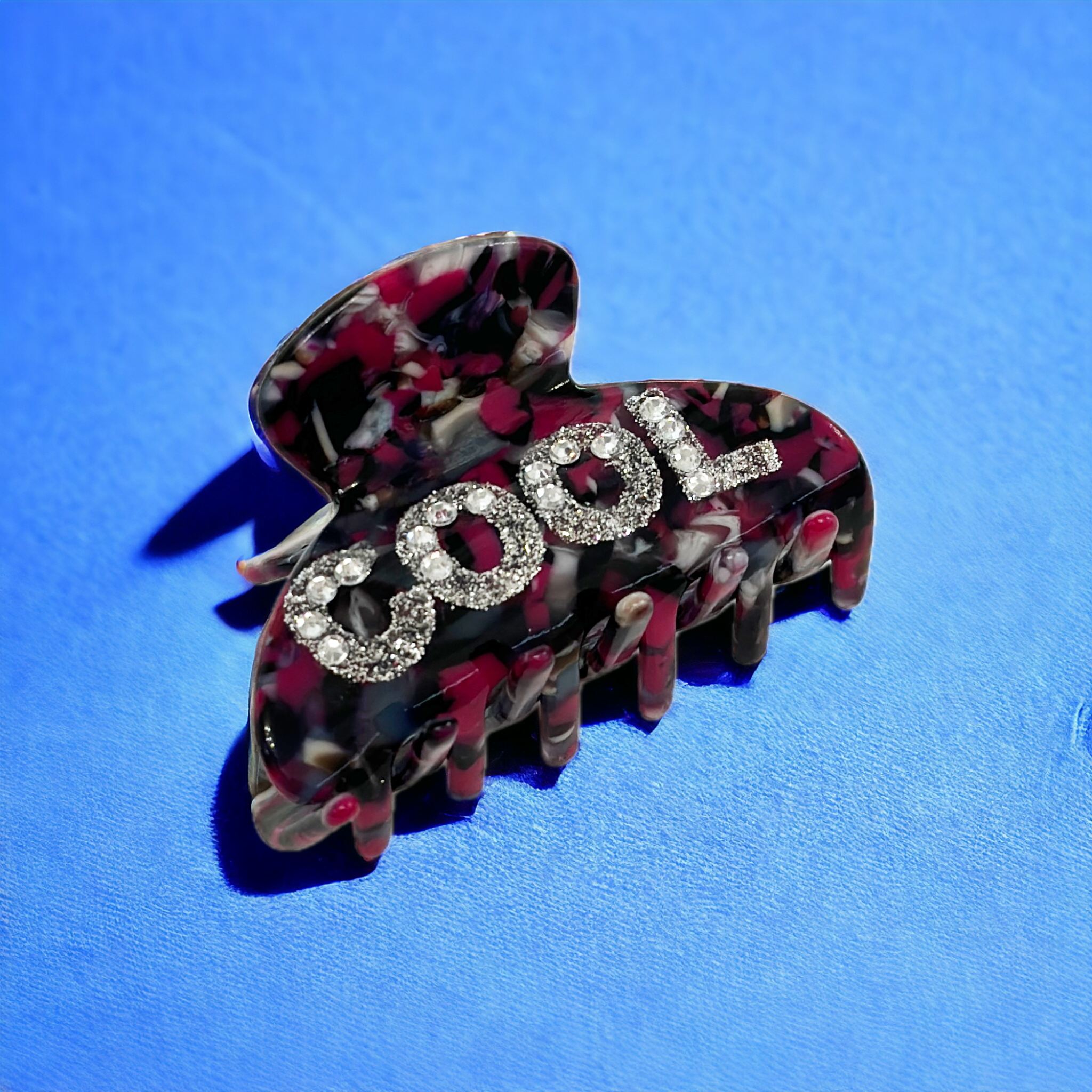 Elevate your hairstyle instantly with this chic "COOL" acetate hair clip, adorned with rhinestone lettering on both sides. This small yet impactful accessory is perfect for adding a subtle yet stylish touch to any look, making it the ideal go-to for any day. Transform your everyday hairstyle with ease and flair.