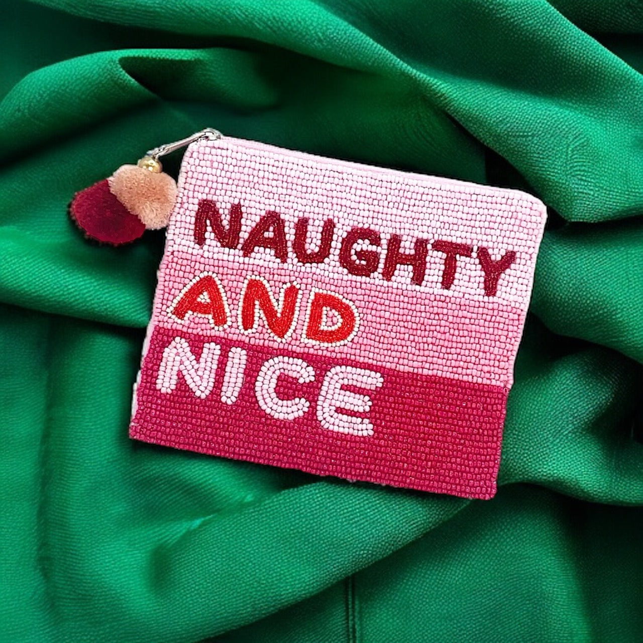 Pair the Naughty & Nice Beaded Coin Pouch with your holiday party outfit for a fun and festive touch, or carry it in your everyday bag to keep the holiday spirit alive wherever you go. This pouch is versatile enough to complement any seasonal look, making it a must-have accessory.