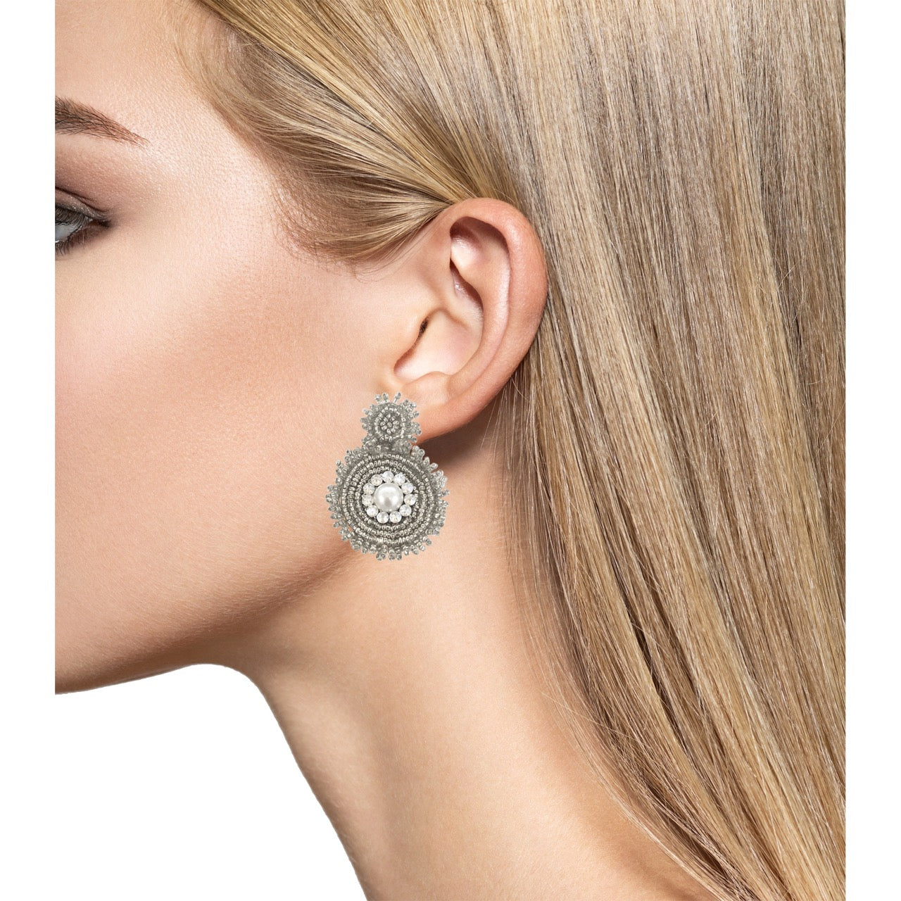 Celestial Silver Design 🌟: These earrings feature sparkly silver beadwork with starburst patterns that bring major cosmic energy.
